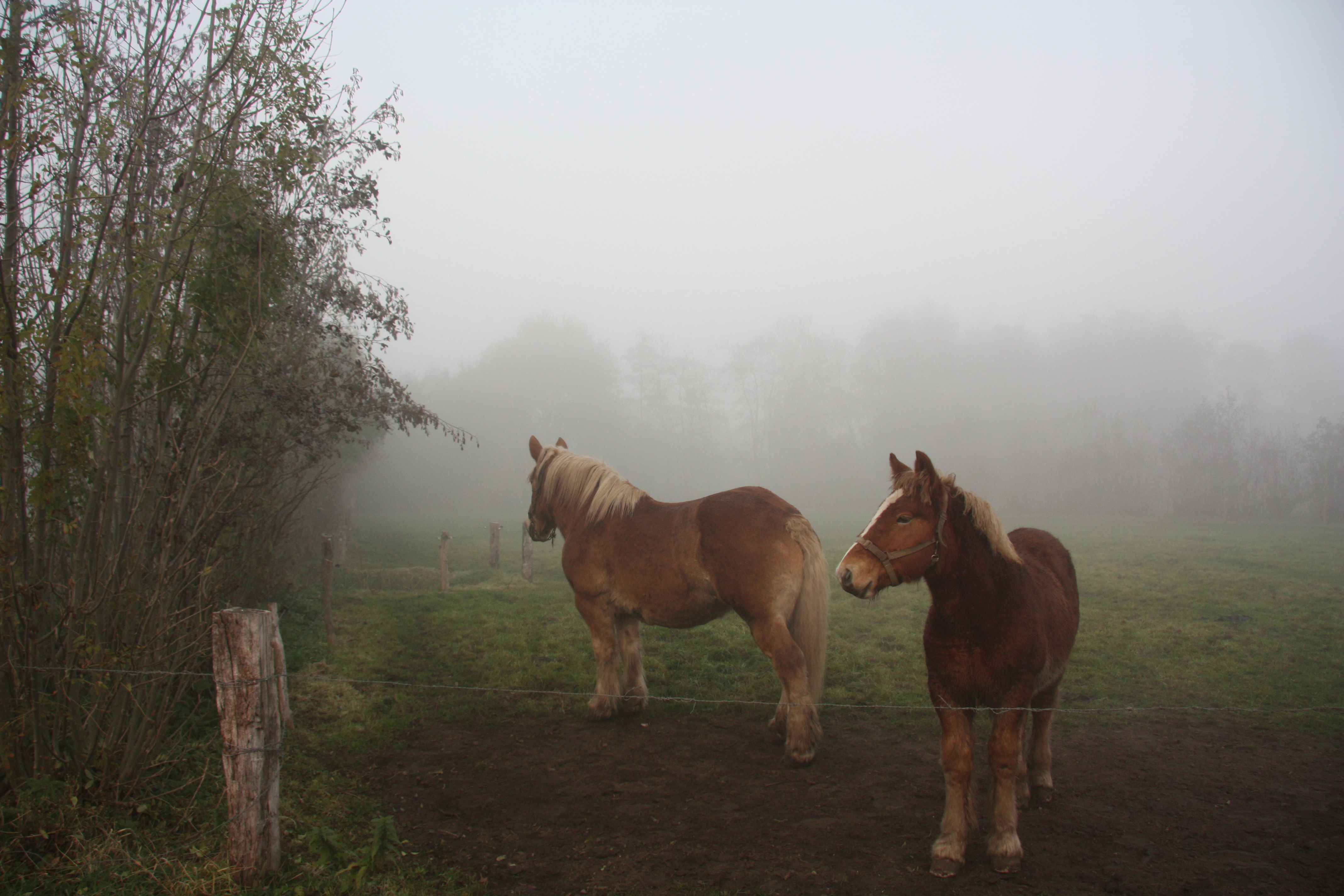 Paarden in de mist
