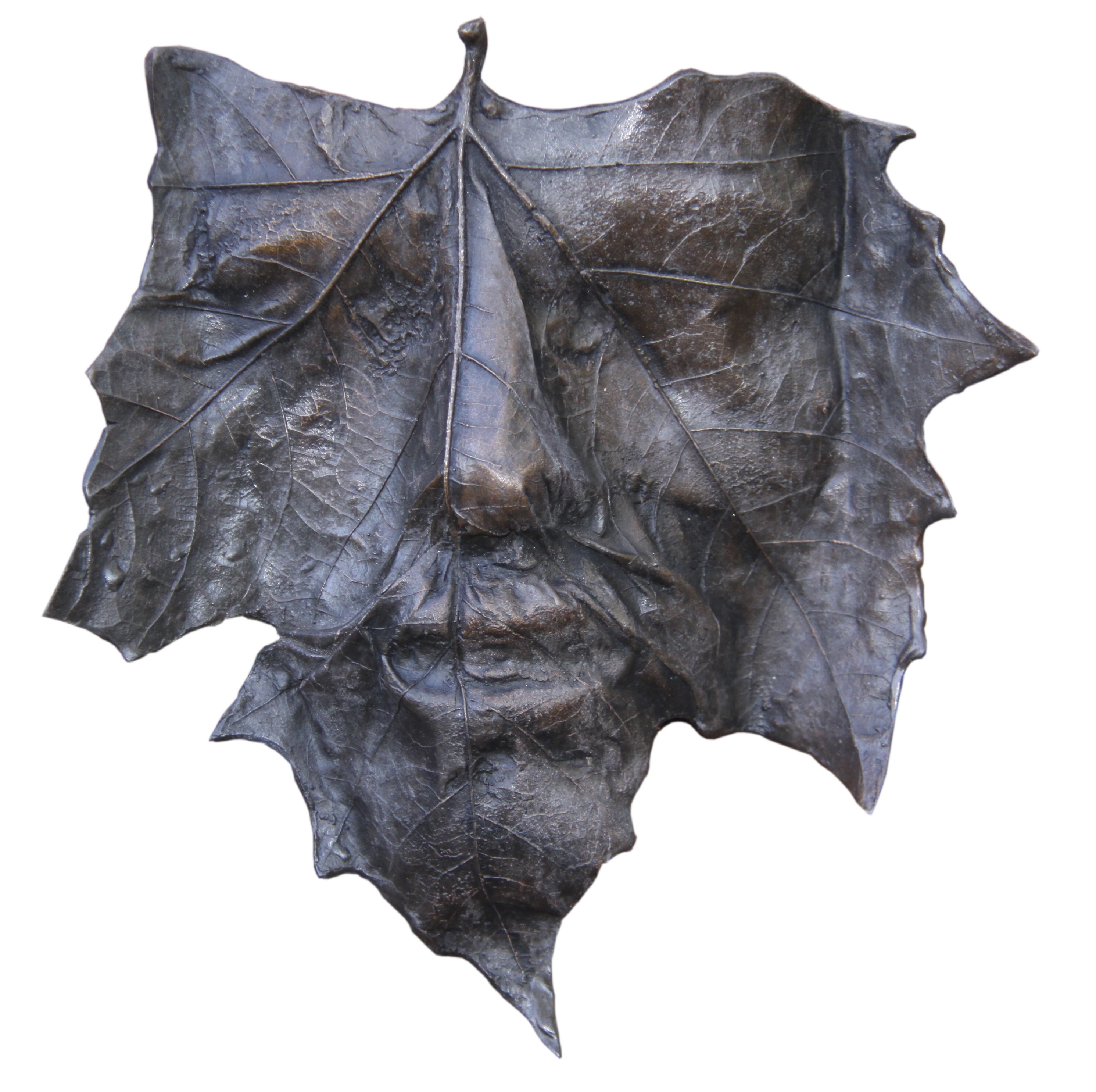 Boomblad met gezicht in brons gegoten. unicum