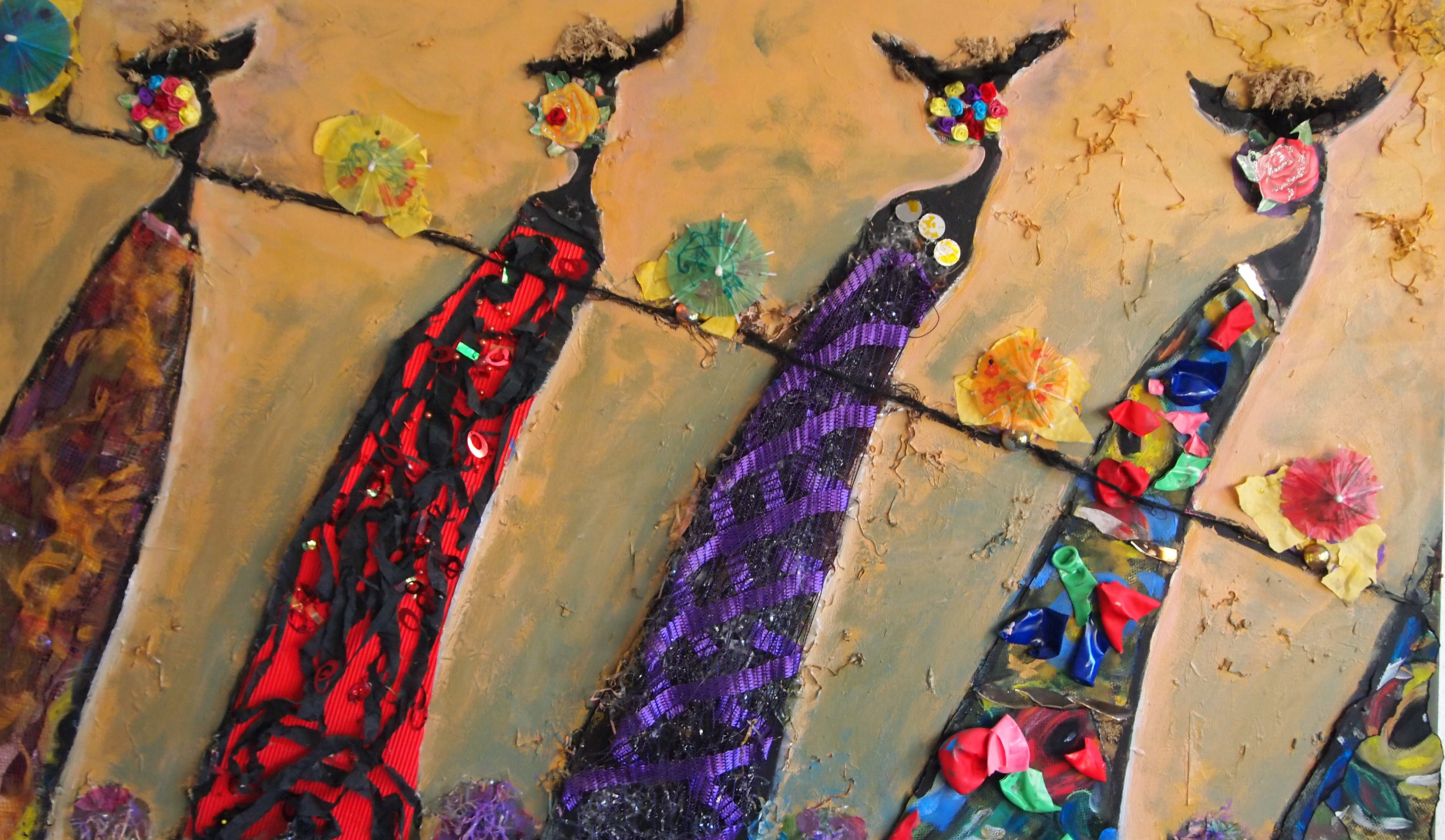 Kleurig inheemse dames met Aziatische trekken die door een optisch trucje naar boven lijken te lopen.