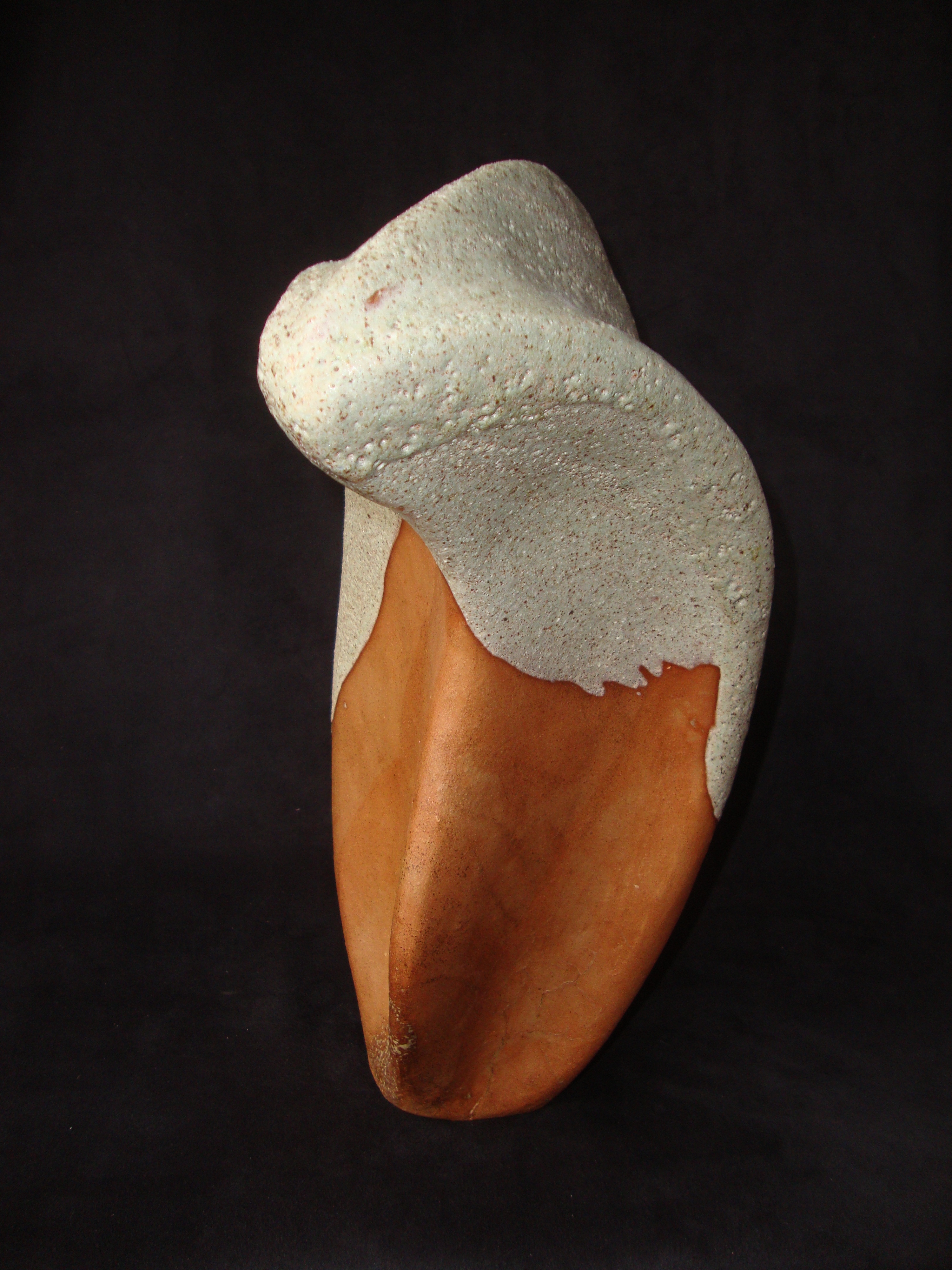 Zoektocht in keramiek: vrouwzijn in vloeiende lijnen en contouren; hoge dunne vaasvormen als weerspiegeling van een zoektocht naar identiteit...