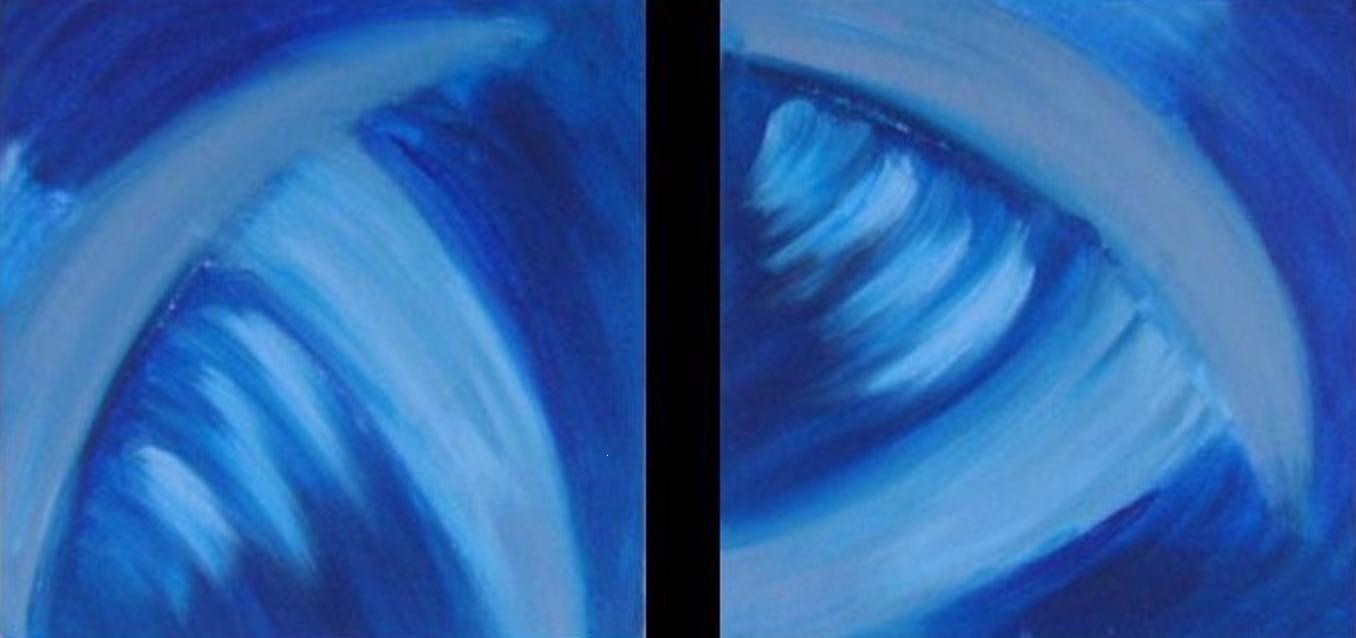 Gemaakt vanuit een verdrietig gevoel. Het doek is in 4 posities te bekijken en in combinatie met het 2e deel samen te stellen. Wordt verkocht als set van 2.