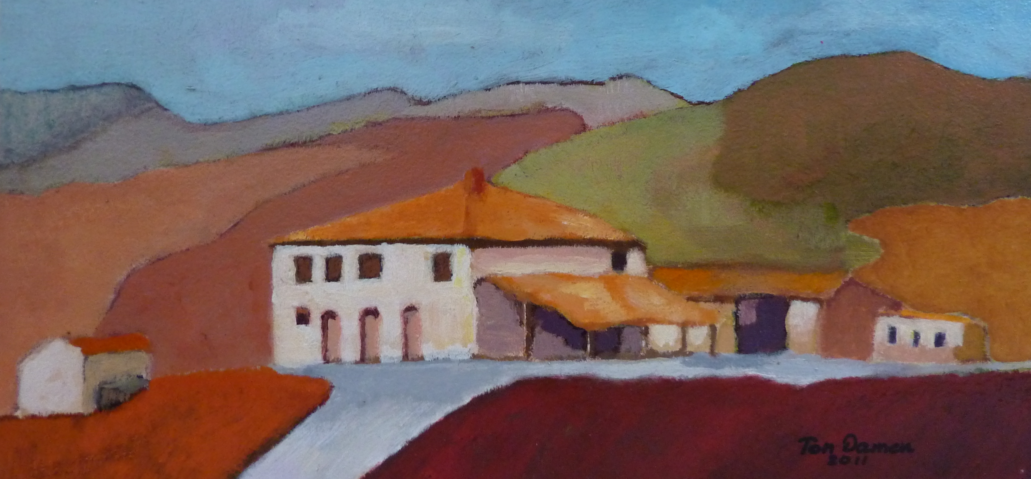 Landschap Acryl Kleurrijk Frankrijk Paneel Boerderij Frans Schuur Boeren Ferme