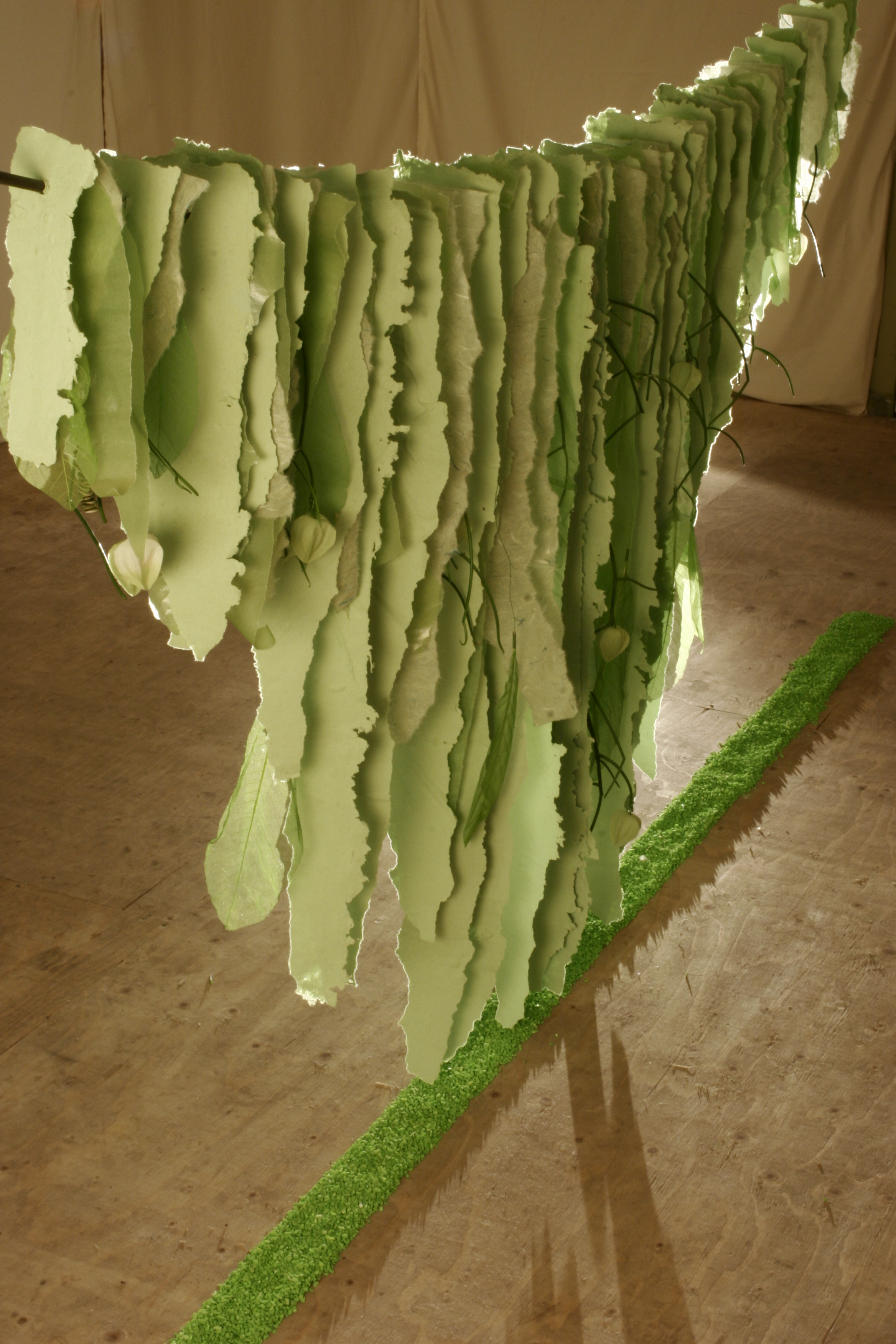 Hangend object van handgeschept papier en div natuurlijke materialen.
