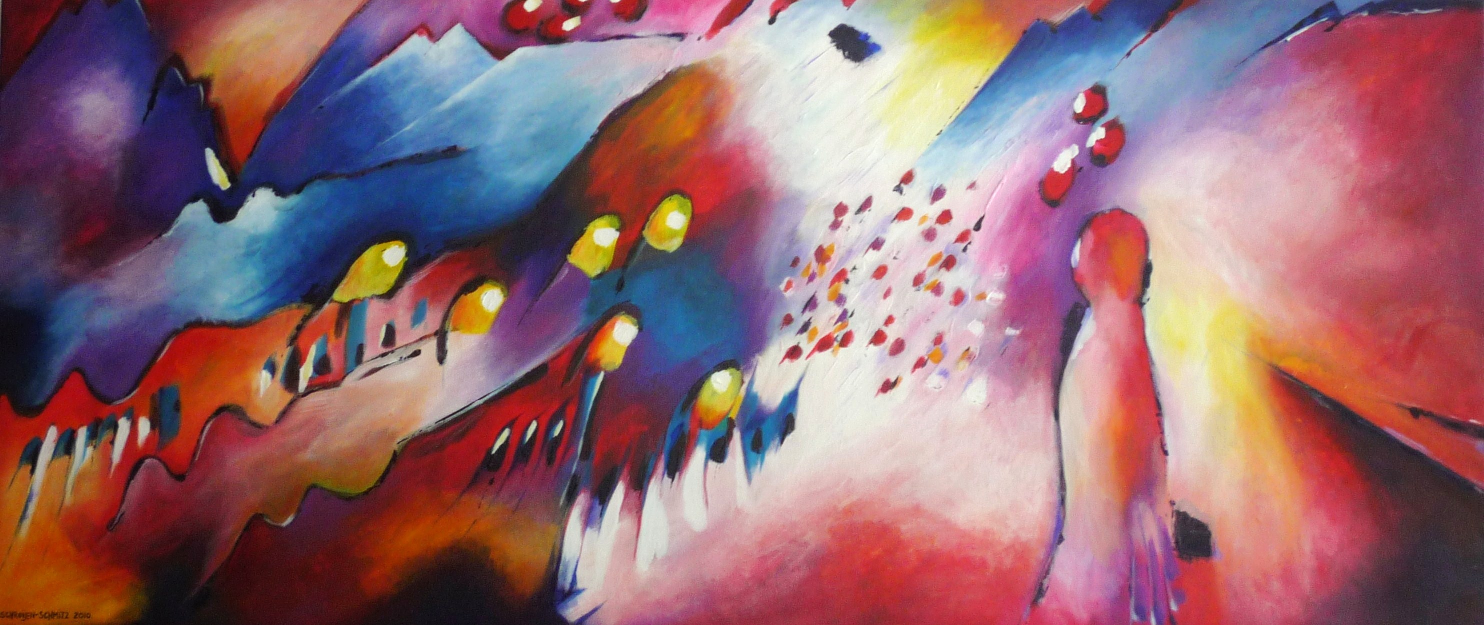 In dit schilderij is duidelijk de invloed van Kandinsky zichtbaar. Ik heb een mooie compositie proberen te maken op een lied van de Nederlandse zangeres Giovanca.