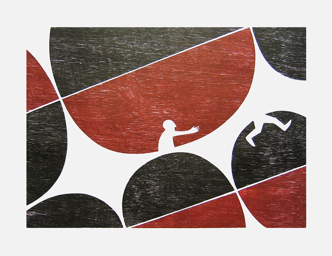 Losing Myself Houtdruk Figuur Franskwakkenbos Rood Zwart Papier