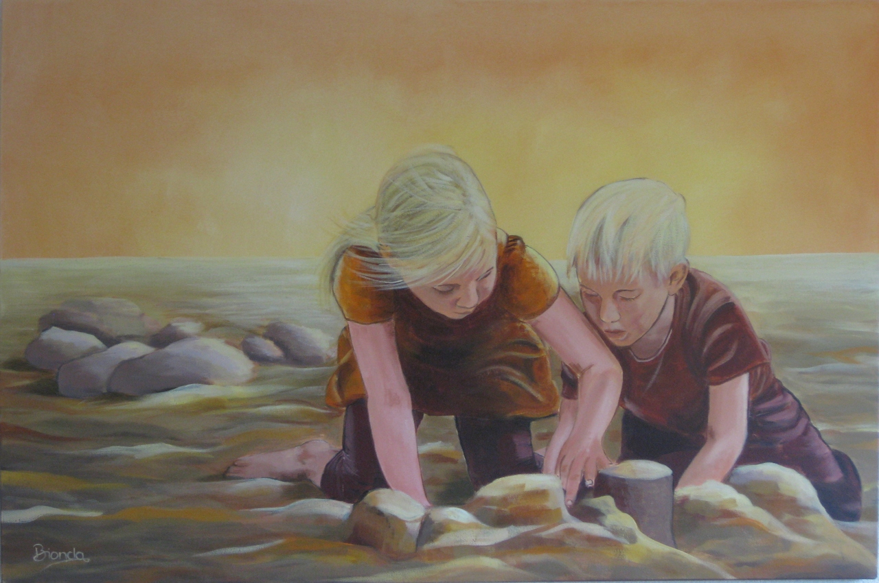 Acryl Realistisch Doek Op In Kinderen Zand