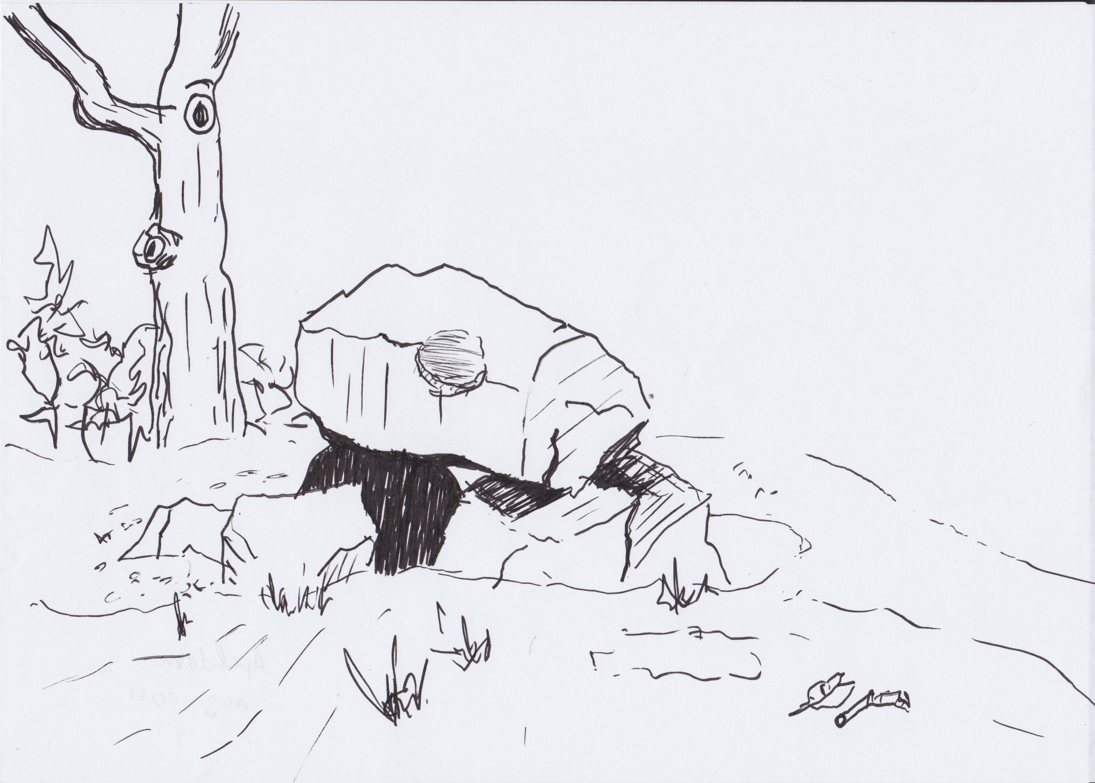 Dit is de enige stenenformatie die overgebleven is bij het dorpje Apeldorn. Een grote hond uit de onderwereld heeft een hebzuchtige boer doodgebeten die alle andere formaties verkocht heeft aan de wegenbouwers. Lees hier het complete verhaal : http://trancemissie.eu/blog/vruchtbaarheidsrituelen-bij-apeldorn/