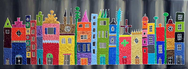 Ik ben professioneel kunstenaar en maak kleurrijke moderne en vrolijke kunst. In 1998 ben ik begonnen met schilderen en heb verschillende materialen en technieken uitgeprobeerd maar heb pas echt mijn draai gevonden toen Jan te Wierik mij een jaar later een groot linnen doek gaf met de opdracht hier een echte 'Bianca Leusink' van te maken. Zo gezegd zo gedaan en sindsdien heb ik mij echt kunnen uiten op doek, steen etc. en een eigen stijl weten te creeren met herkenbare vormen en heldere kleuren.