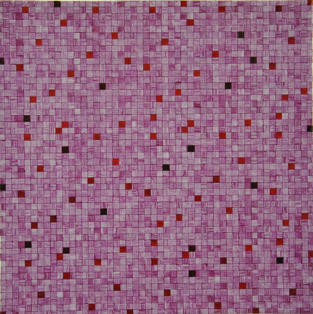 Thema: Chaos (Geometrische Chaos) Mijn kunst is beïnvloedt door de moderne wiskundige en wetenschappelijke benadering van het begrip complexe orde van de natuur. Met name heb ik me verdiept in de Chaos theorie en de fractal geometrie. Ik ben geen wiskundige, en ik gebruik geen wiskundige formules. De ideeën van de Chaos theorie en fractal geometrie leiden tot de ontwikkeling van de composities in mijn werk. Ik gebruik driehoeken,vierkanten en cirkels in mijn schilderijen, maar in mijn huidige serie, geoChao richt ik me alleen op de vierkanten en de verhoudingen tussen de vierkanten. Ik ontwikkel mijn composities door kleine vierkantjes op grote te zetten of grote op kleine te zetten. Het gaat om de onderlinge verhoudingen tussen de vierkanten. Ik laat de methode die ik kies de compositi