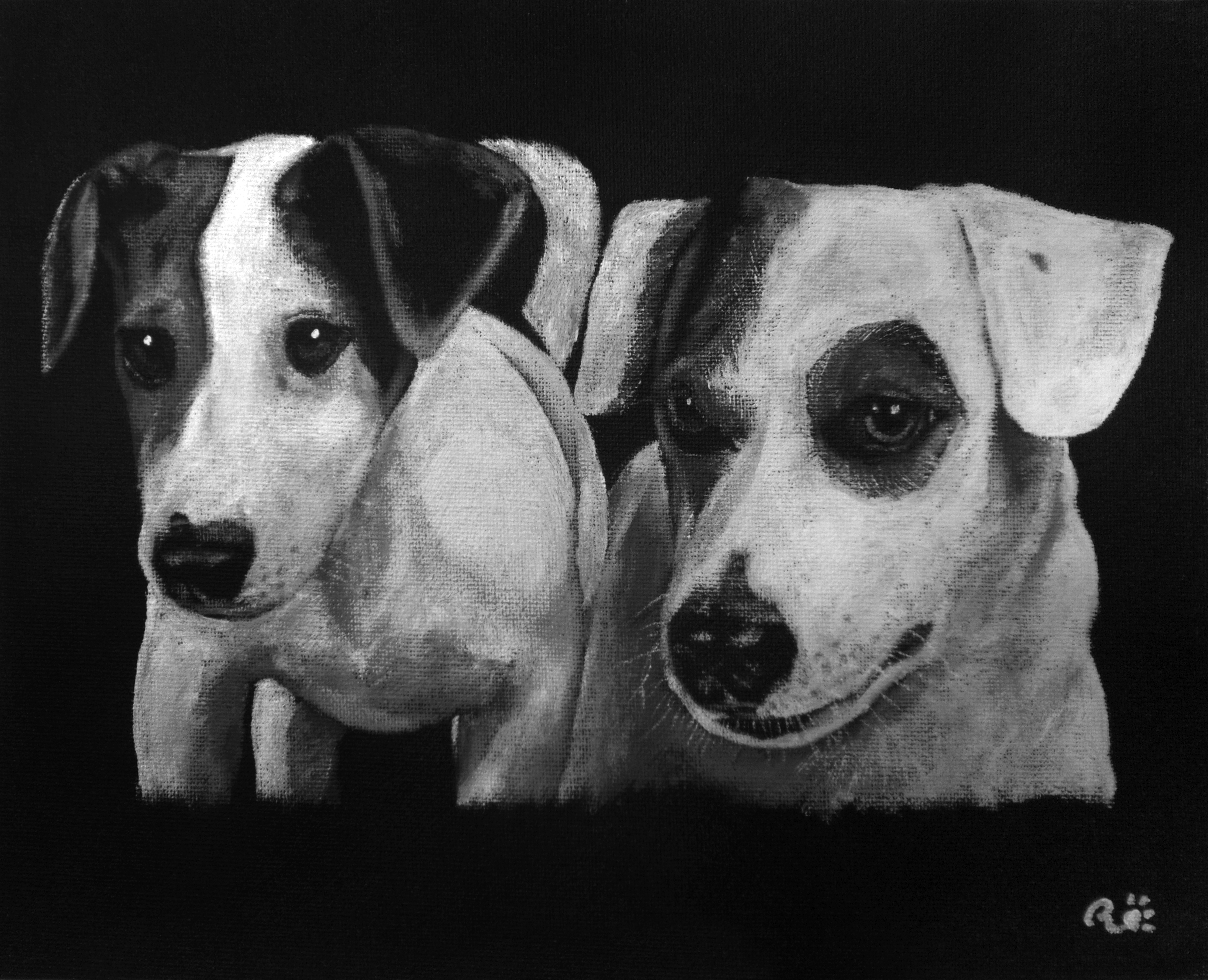 Zwart-wit portret van Fien & Charlie, twee jack-russells.