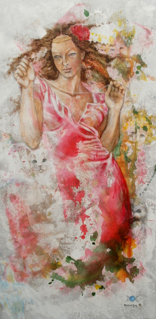 Wit Rood Acryl Vrouw Woman Red Acrylic Draad White Godin Mythology Lot Goddess Fate