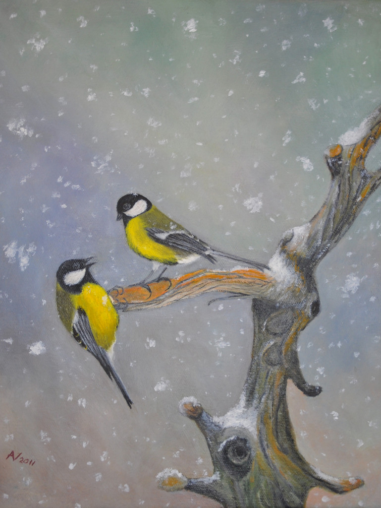 Koolmeesjes in de sneeuw