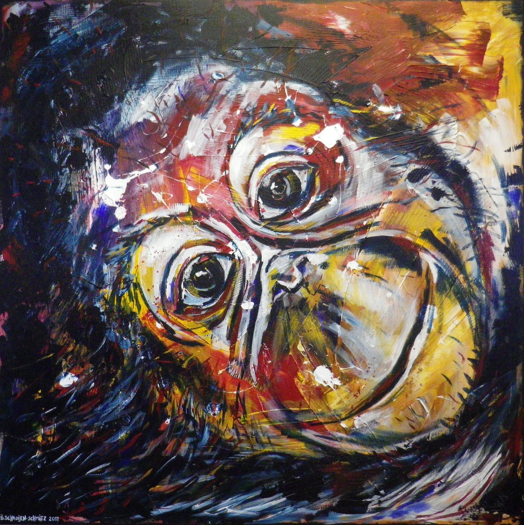 Een jonge Orang Oetan op zeer expressieve wijze neergezet. (met aangeschilderde rand)