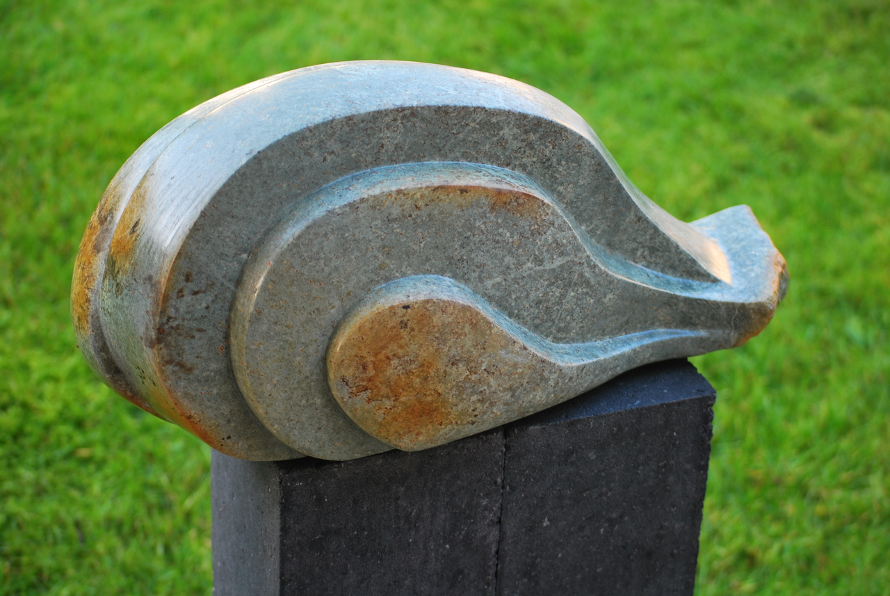 Golf, een beeld gemaakt in opaal serpentijn. De Golf is ontstaand gedurende een cursusperiode bij de beeldhouer Kees Verwey. De zee heeft altijd een grote aantrekkingskracht op mij. Zie ook mijn beeld De branding.