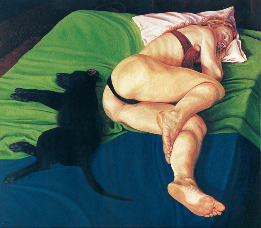 Slapende vrouw met slapende hond is iets vlotter geschilderd dan de meeste van mijn werken.
