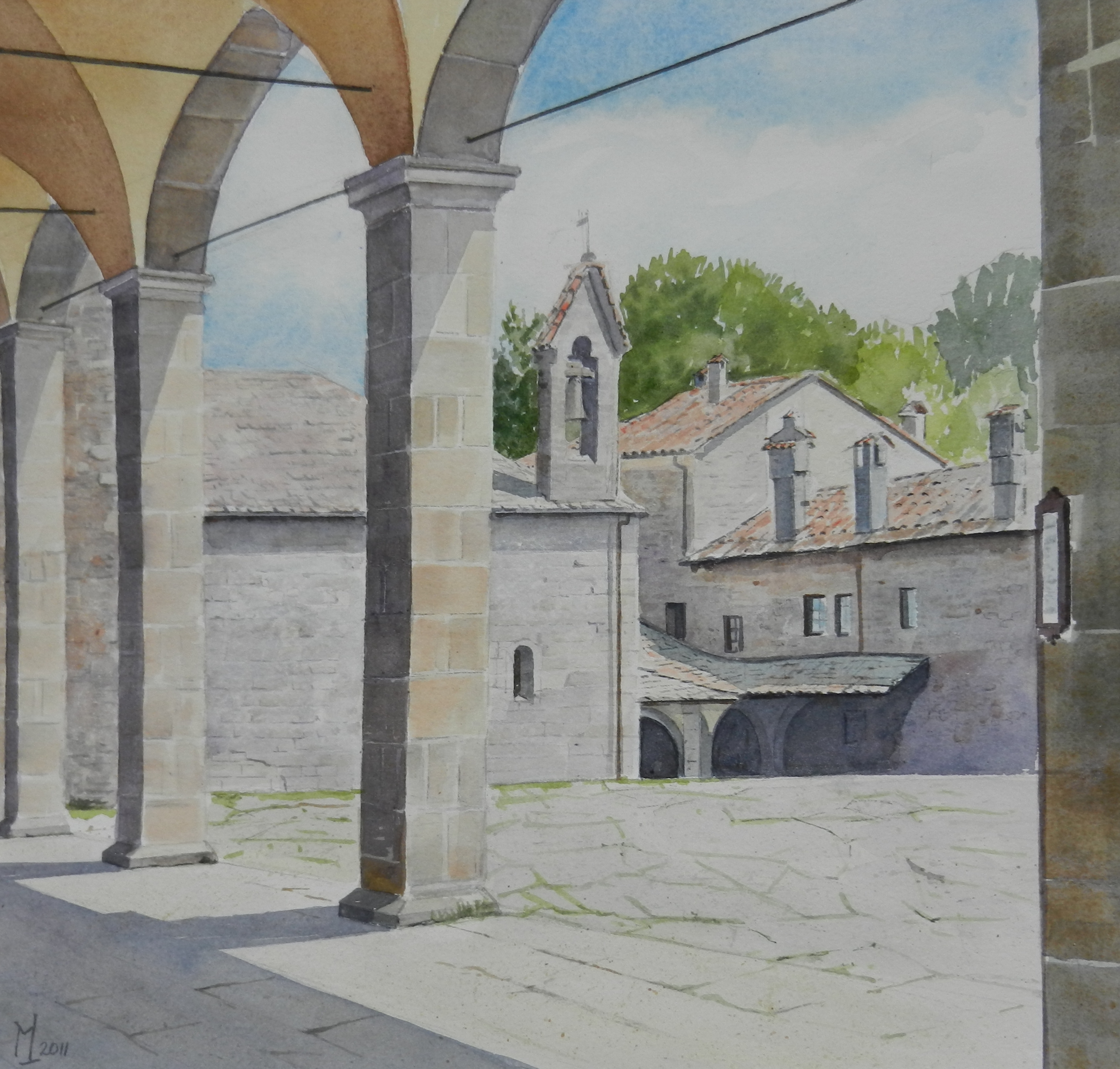 Schilderij Aquarel Realistisch Architectuur Klooster Natralistisch