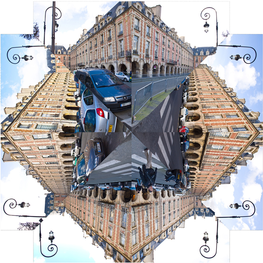 Reconstructie van Place des Vosges in Parijs. Vanaf de omliggende straten van het plein heb ik foto's gemaakt. Die zijn gebruikt om dit vierkante plein te reconstrueren.