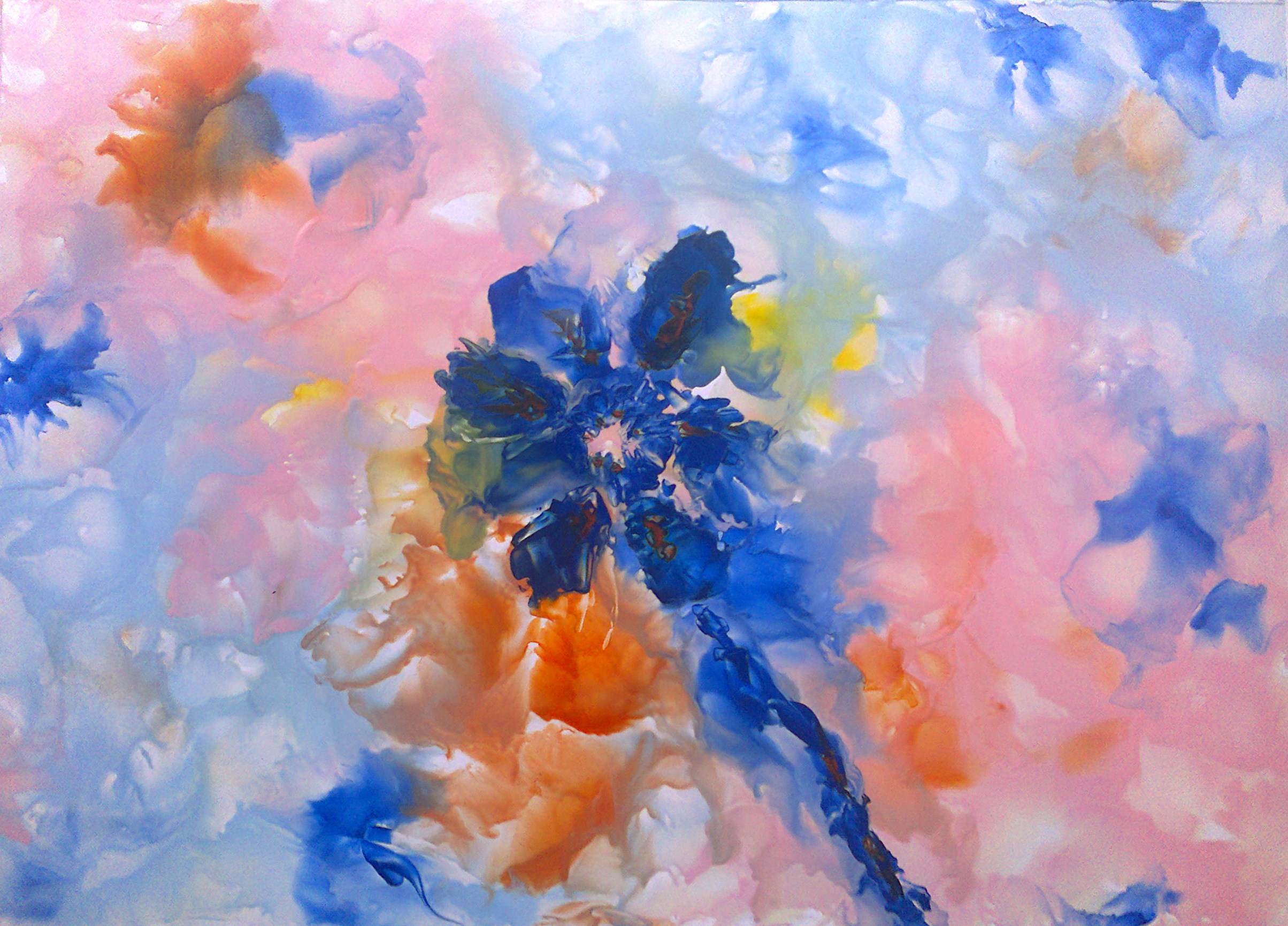 Oranje Geel Blauw Bloem Roze Lente Encaustic Bijenwas Gekleurde