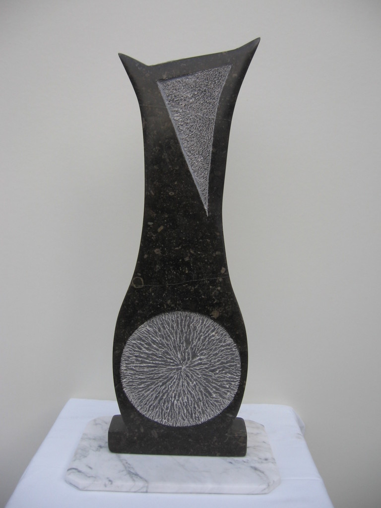 Beeld gemaakt uit steensoort arduin. Dit is een harde steensoort Beeld is gedeeltelijke bewerkt met een puntbeitel en gepolijst