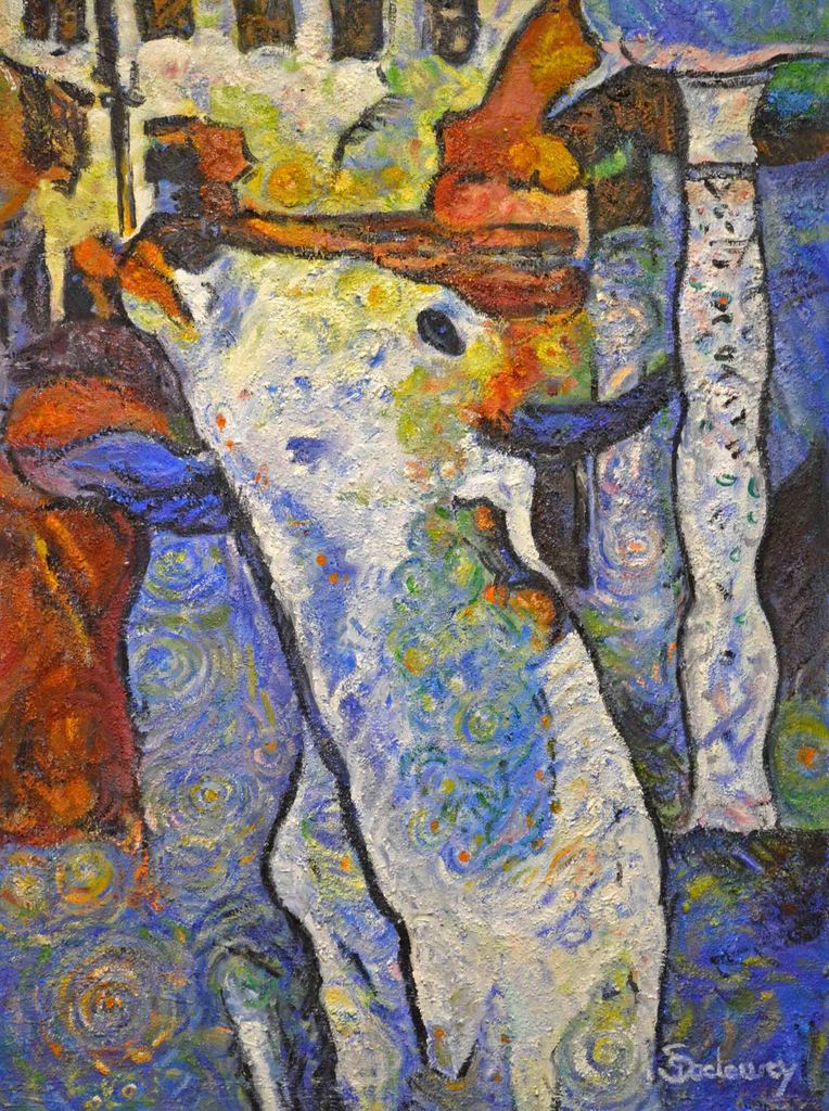 Greta Soetewey schildert haar impressie. Vooral dieren en mensen met hun tradities staan centraal op de foto's waarop ze haar schilderwerken baseert.