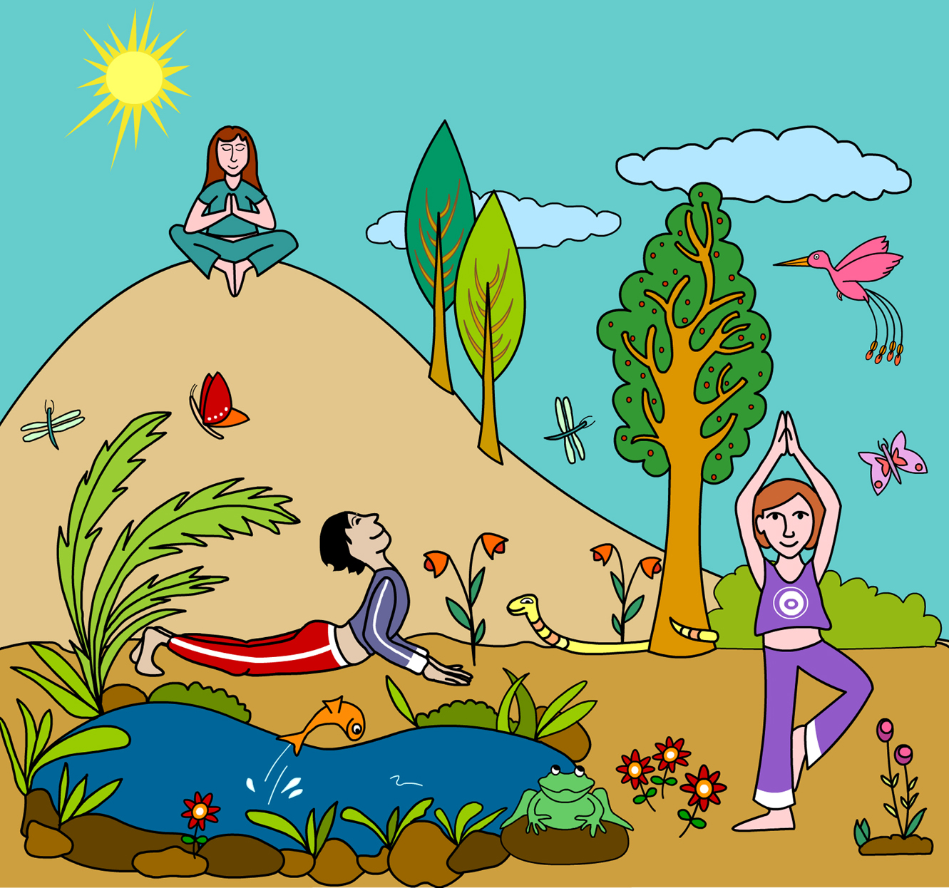 Kleurrijk Natuur Vrolijk Yoga Ontwerp Hoes Cd Kinderyoga Yogahoudingen