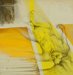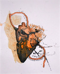 Associatiewerk met waterverf met inkt in passepartout.