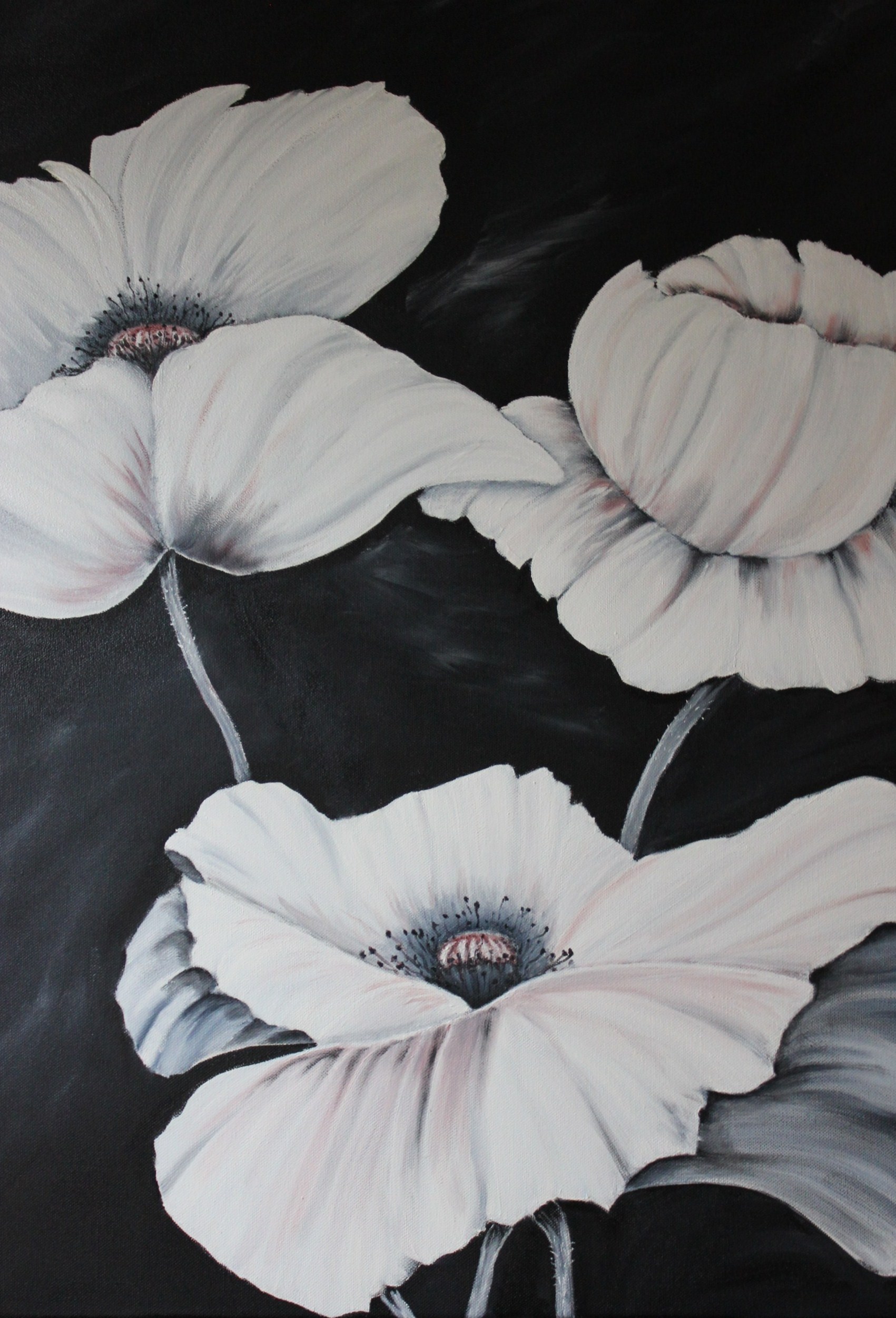 Drie witte klaprozen. In opdracht gemaakt.