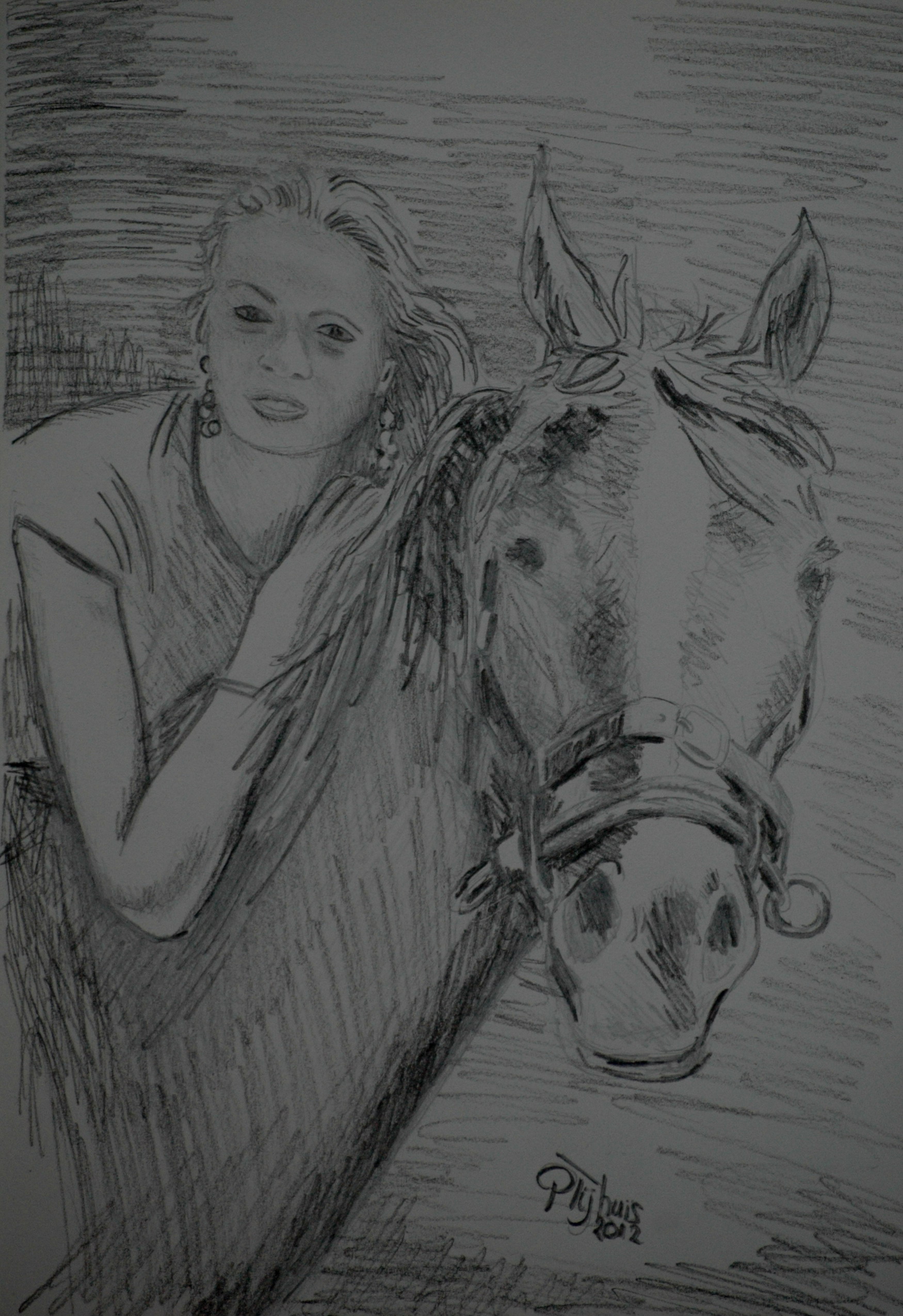 Meisje Paard Tekening Potlood Girl Horse Drawing