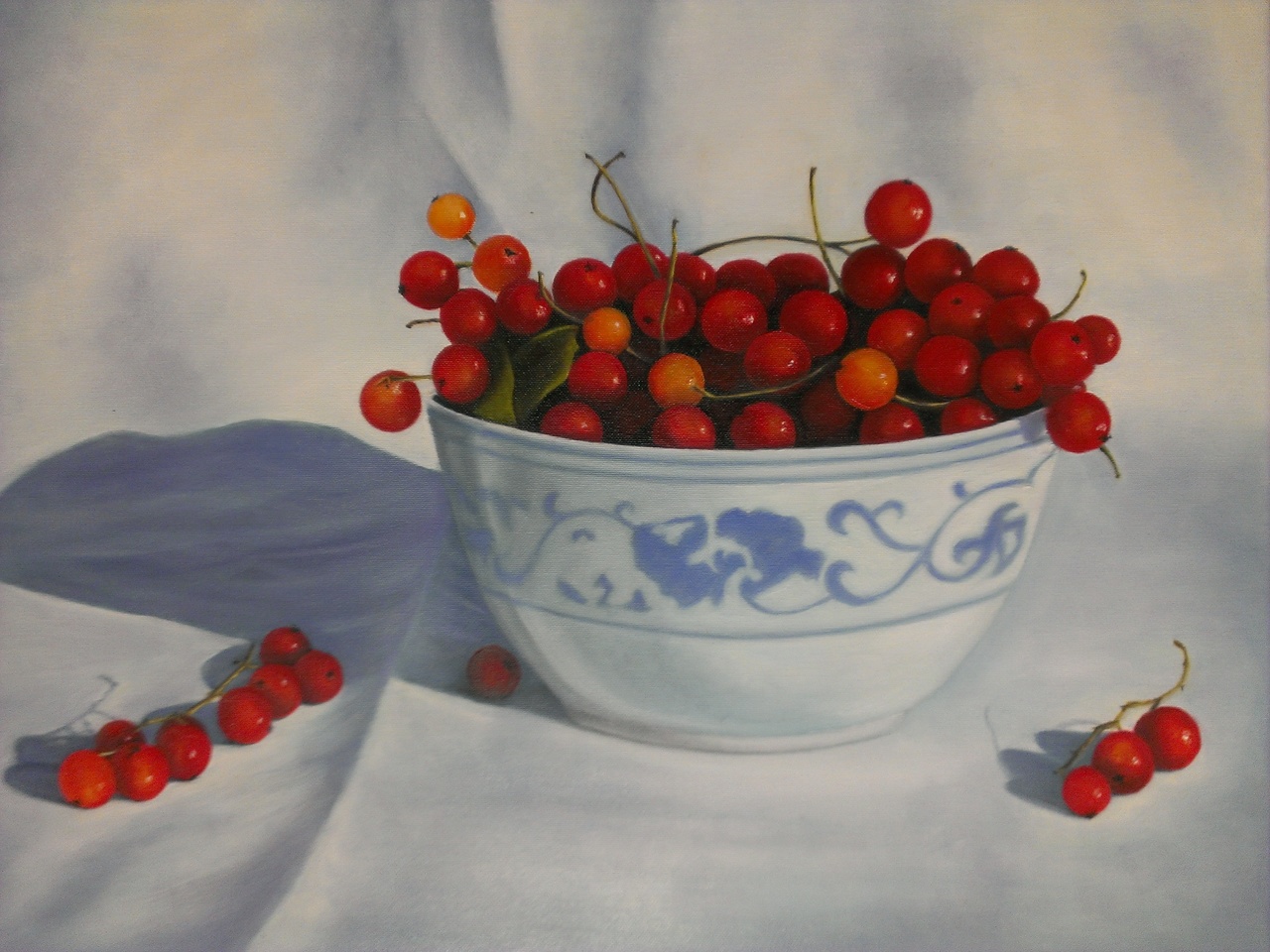 Schaaltje aalbessen in de zon Genomineerd voor schilderij van het jaar 2018!