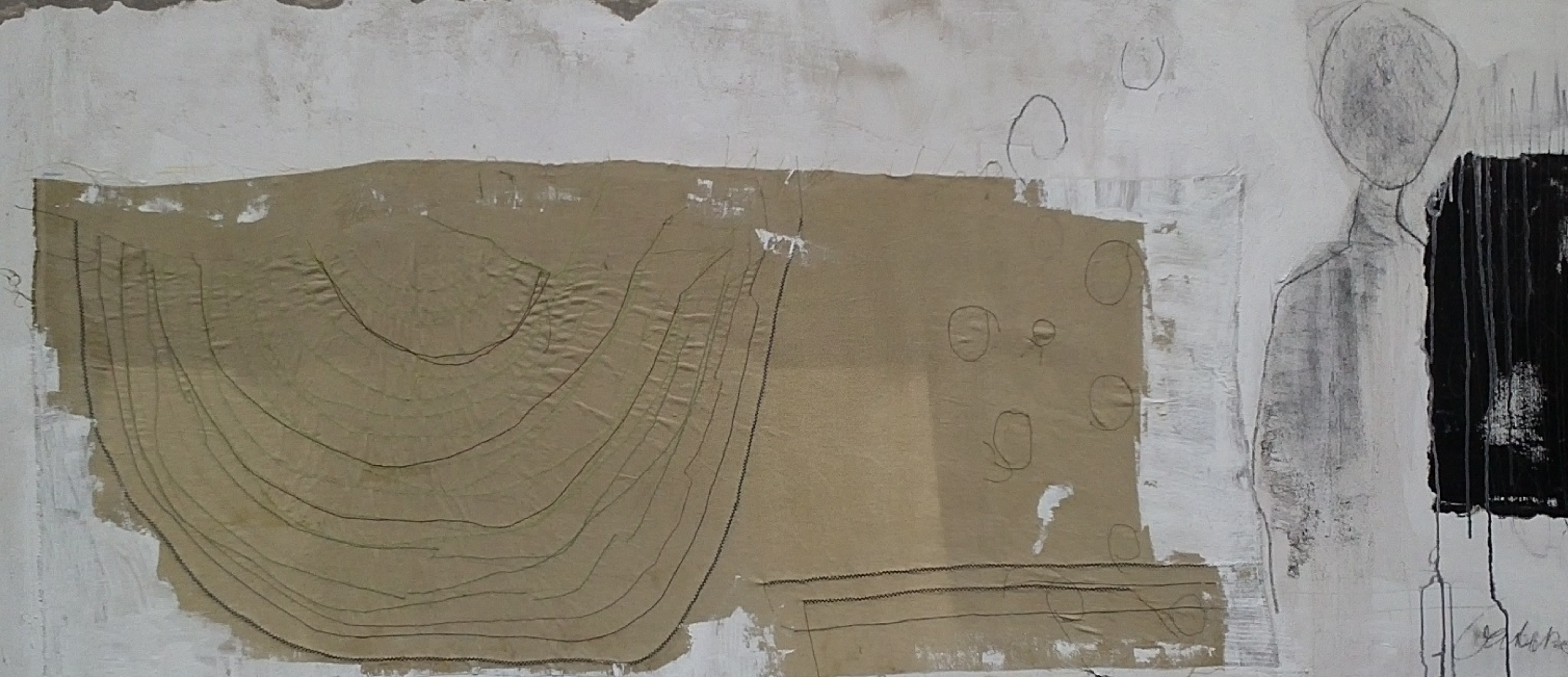 landschappen. Poëtisch maar ook vervreemdend. Met humor en onverwachte wendingen. De kern van de compositie wordt gevormd door grote vormen met een krachtige uitstraling , toegevoegd worden kleine details waardoor je al lopend door het schilderlandschap stuit op onverwachte ontdekkingen.