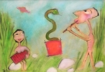 Tineke de Nobel is in de eerste plaats bekend om haar prachtig ontregelende afbeeldingen van mensen. Vliegende kasten en tafels, grappige monsters, aliens en ufo's bevolken haar schilderijen. Het blijft verbazen. Van tijd tot tijd maakt zij een serie schilderijen zonder levende wezens. Het resultaat kan dan op het eerste gezicht abstract lijken, maar het leven is nooit ver weg. Zij is geboren 1957 in Haarlem. Nu woont en werkt ze in Helmond.