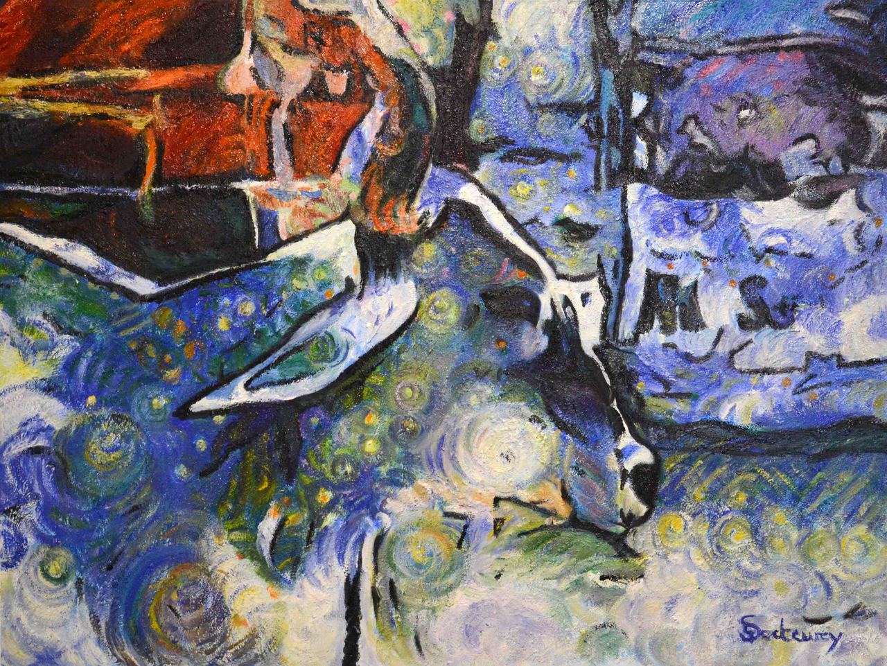 Greta Soetewey schildert haar impressie. Vooral dieren en mensen met hun tradities staan centraal op de foto's waarop ze haar schilderwerken baseert.