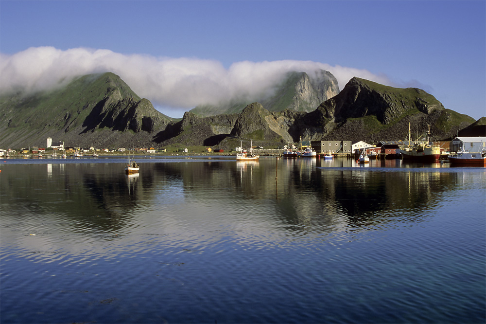 Een dorp ergens aan het einde van de Lofoten (Noorwegen).