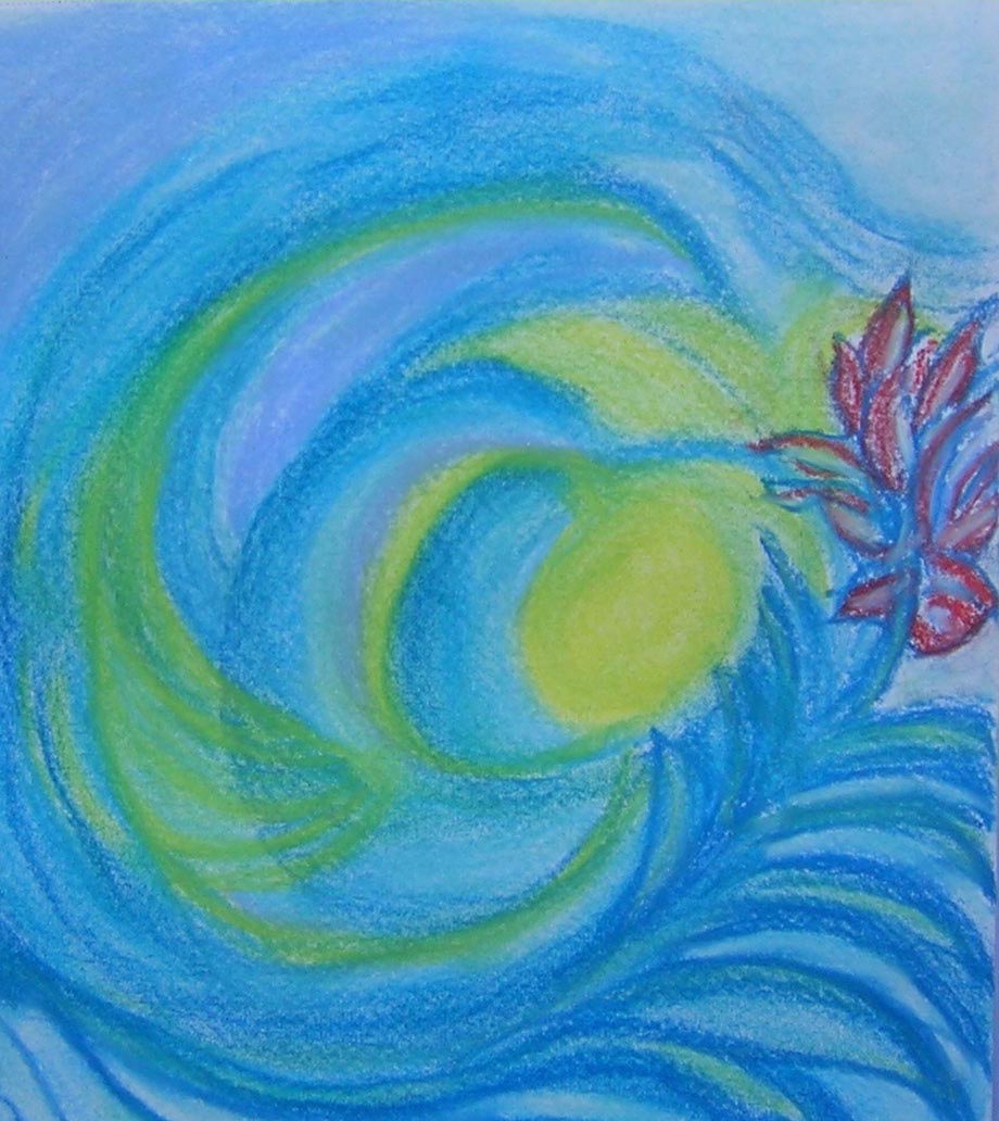 Intuitief getekend met pastelkrijtjes.