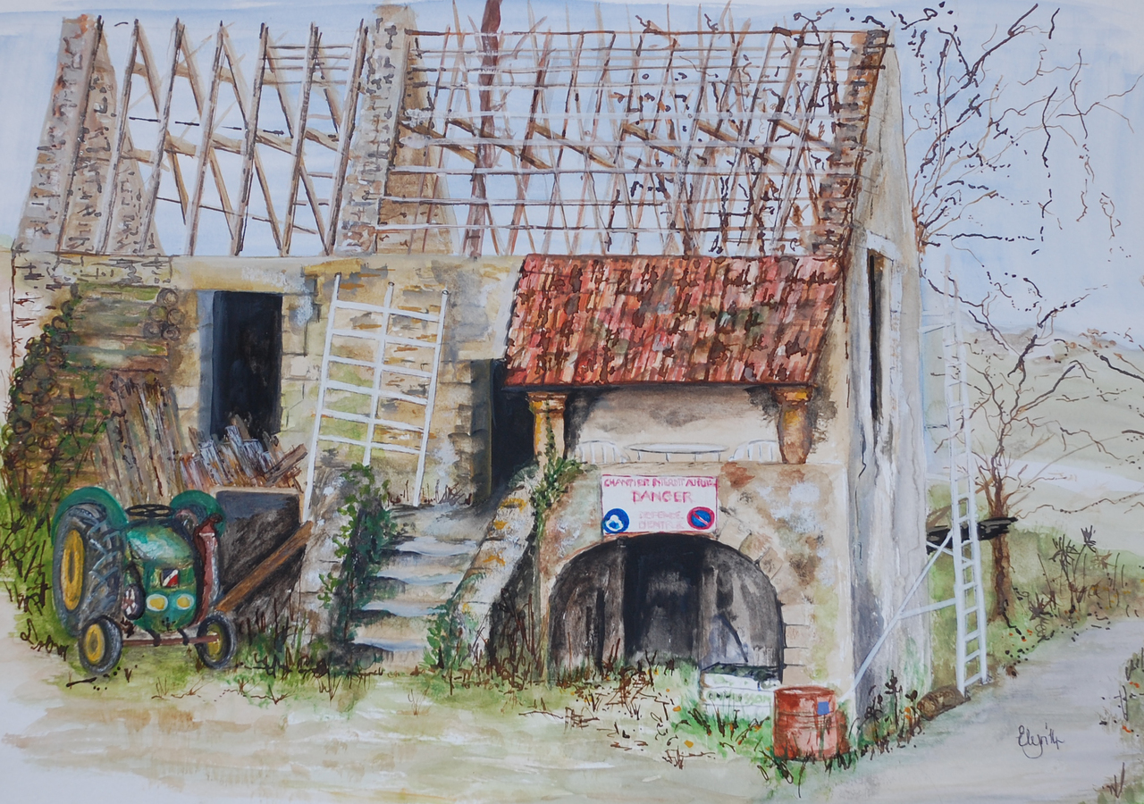 I am living and working in a small village on the river Dordogne in the department of the Lot. I paint, usually in water colours, but also guache and oils and get my inspiration from taking photographs on long walks with my dogs. I am becoming increasingly aware of the potential piece of art in all I see. I love ruined agricultural buildings where nature has taken over once again.