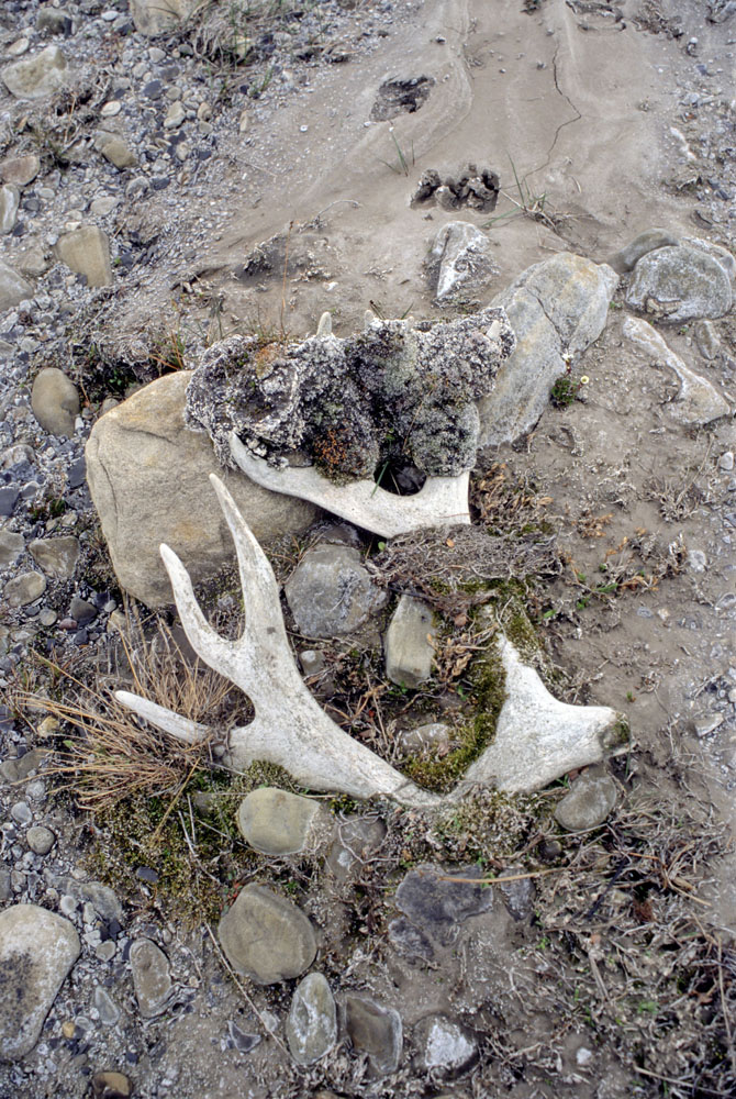 Een achtergelaten gewei van een rendier ergens op de toendra van Spitsbergen.
