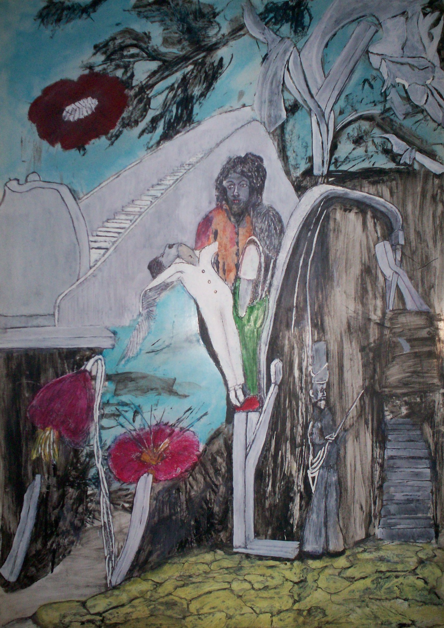 Ik ben geboren op 7 dec. 1959 en ben autodidact. Ik maak collage's d.m.v. eigen werk m.b.v. schilderingen met japans krijt of uitgeknipte eigen tekeningen en opgeplakt in 1 collage. Ik heb een eigen stijl die toch vele variaties vertonen van expressie tot wat ik zelf zeg: 'poppen'.