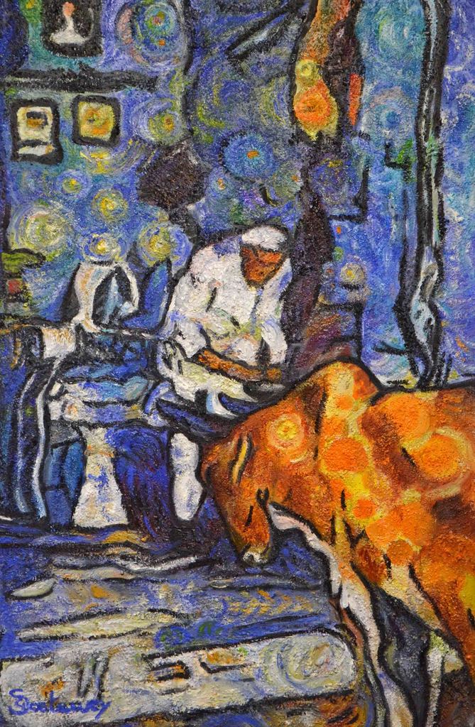 Greta Soetewey schildert haar impressie. Vooral dieren en mensen met hun tradities staan centraal op de foto's waarop ze haar schilderwerken baseert.