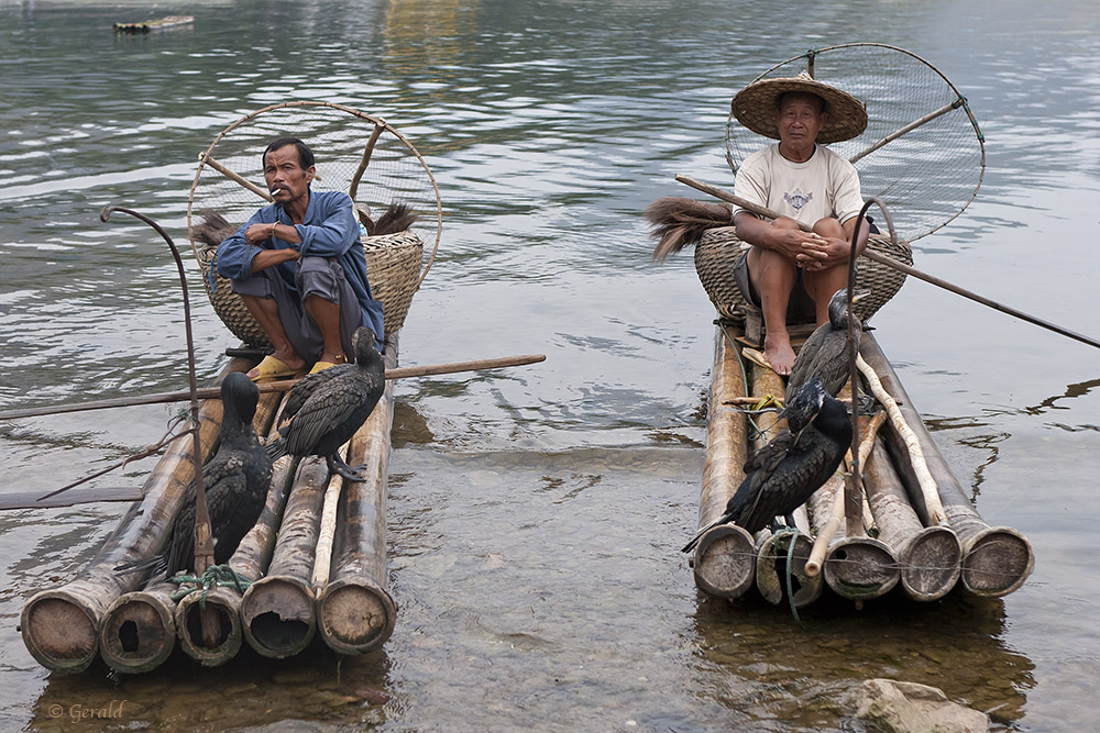China Chinese Vissers Watervogels Bamboo Fishermen Waterbirds Yuangshuo Bamboevlot Raft Aalschovers Comorants