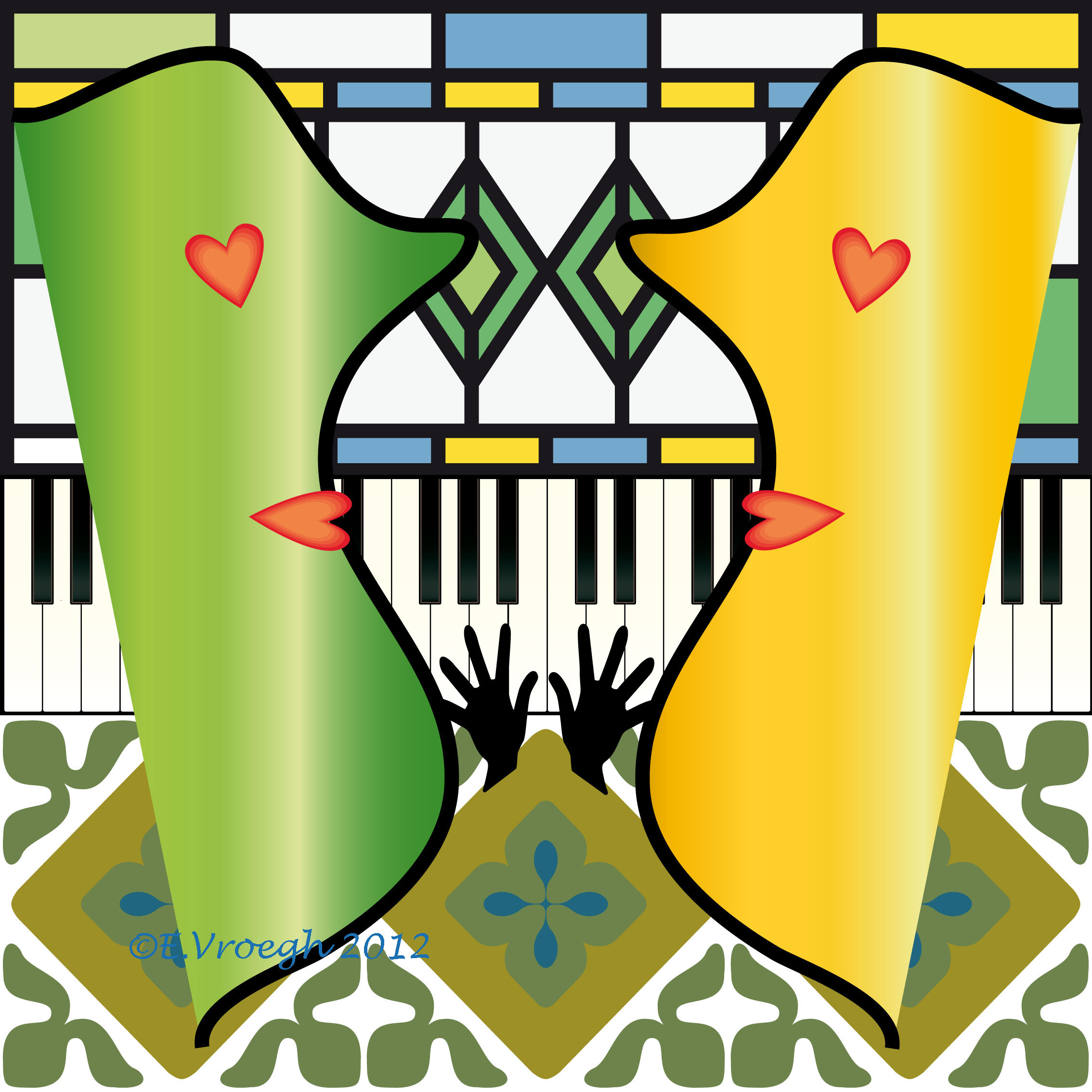 Galerie Artscreen moderne kunst van Ellen Vroegh. Kleurrijke schilderijen, fresco's met grotkunst, prints, giclees en objecten in diverse stijlen met wisselend palet.