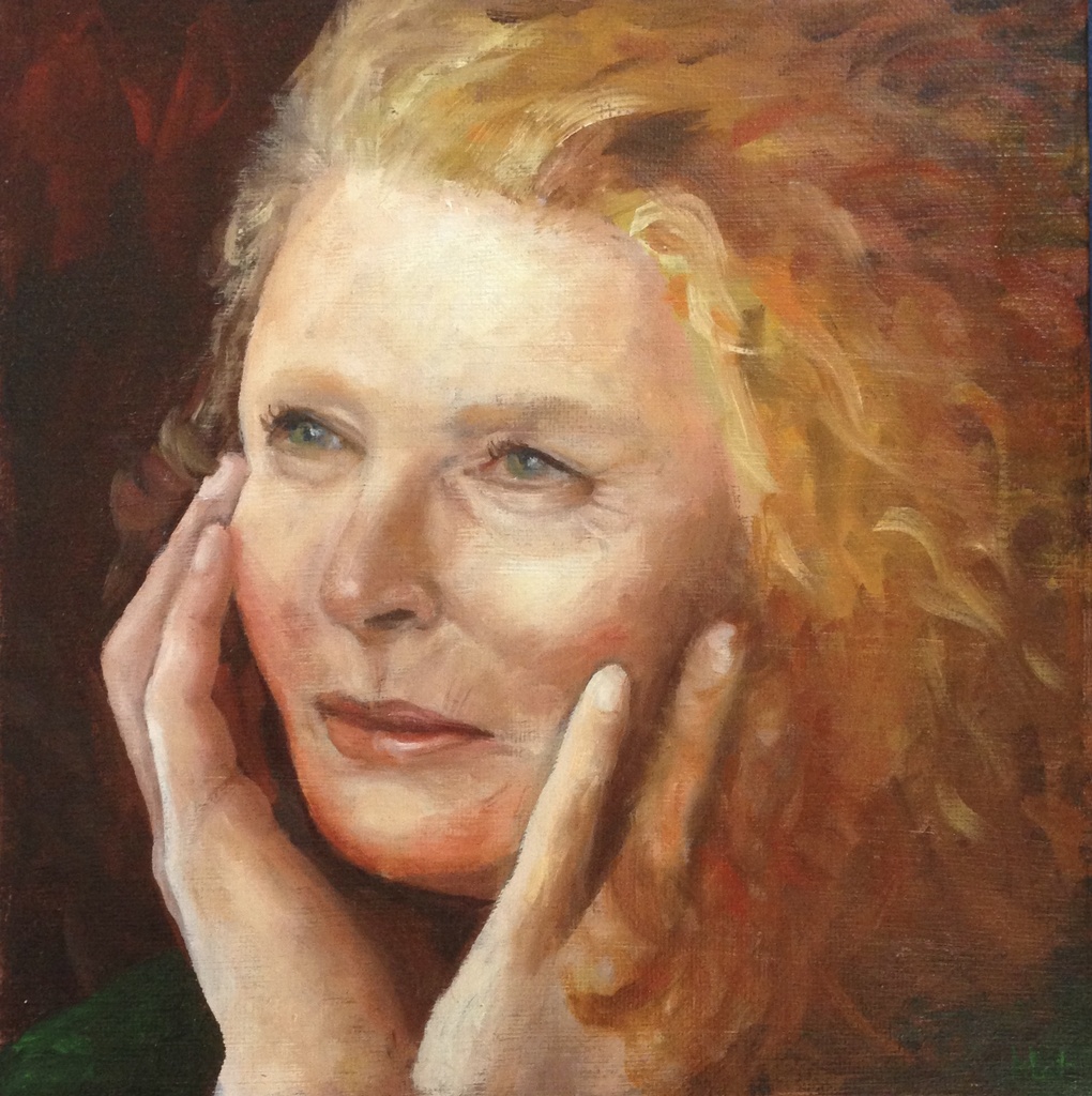 Portret met rood haar en handen.