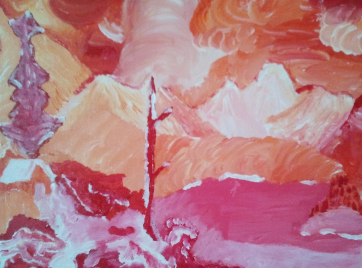 Nog een werk ala Bob Ross, helaas is deze niet meer in mijn bezit want hij hangt al bij iemand aan de muur.