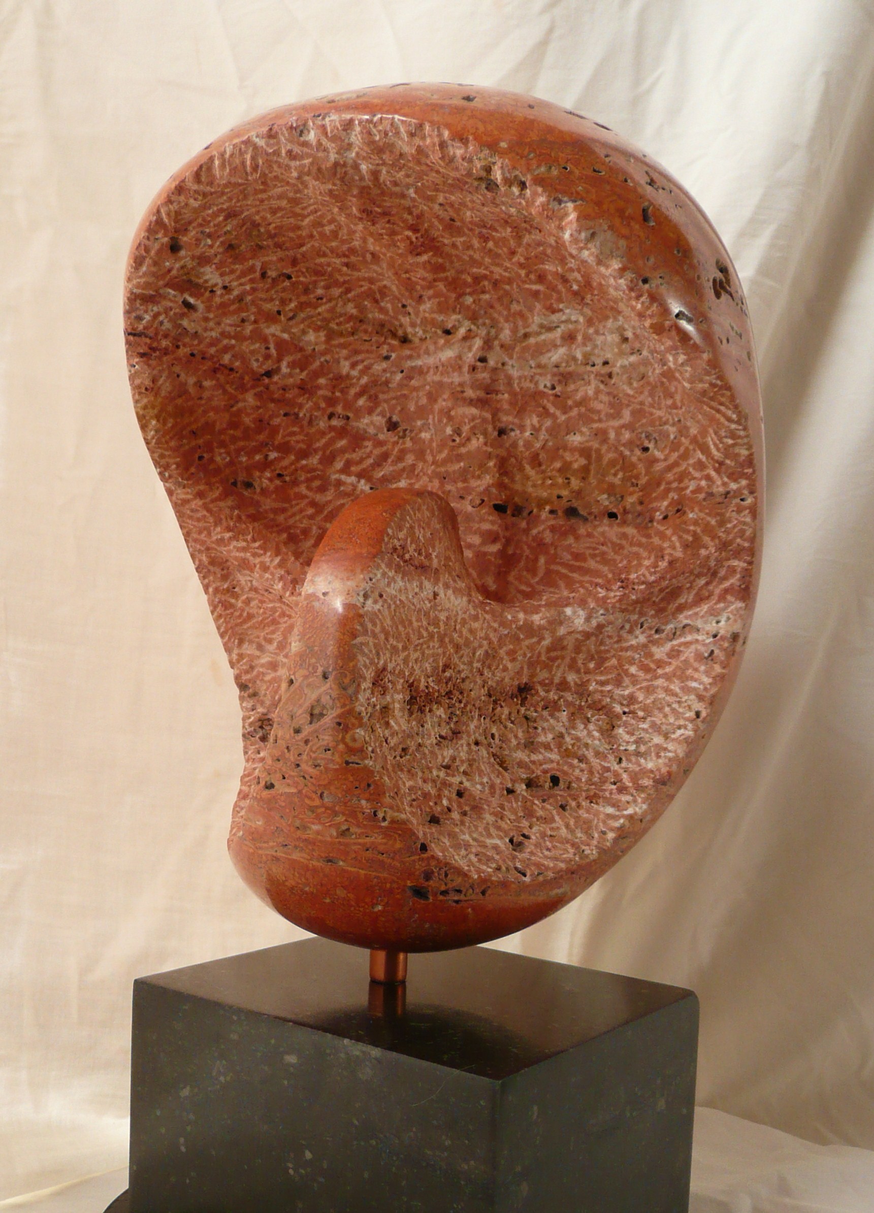 Rood Beeldhouwwerk Nautilus Travertin Steenkappen