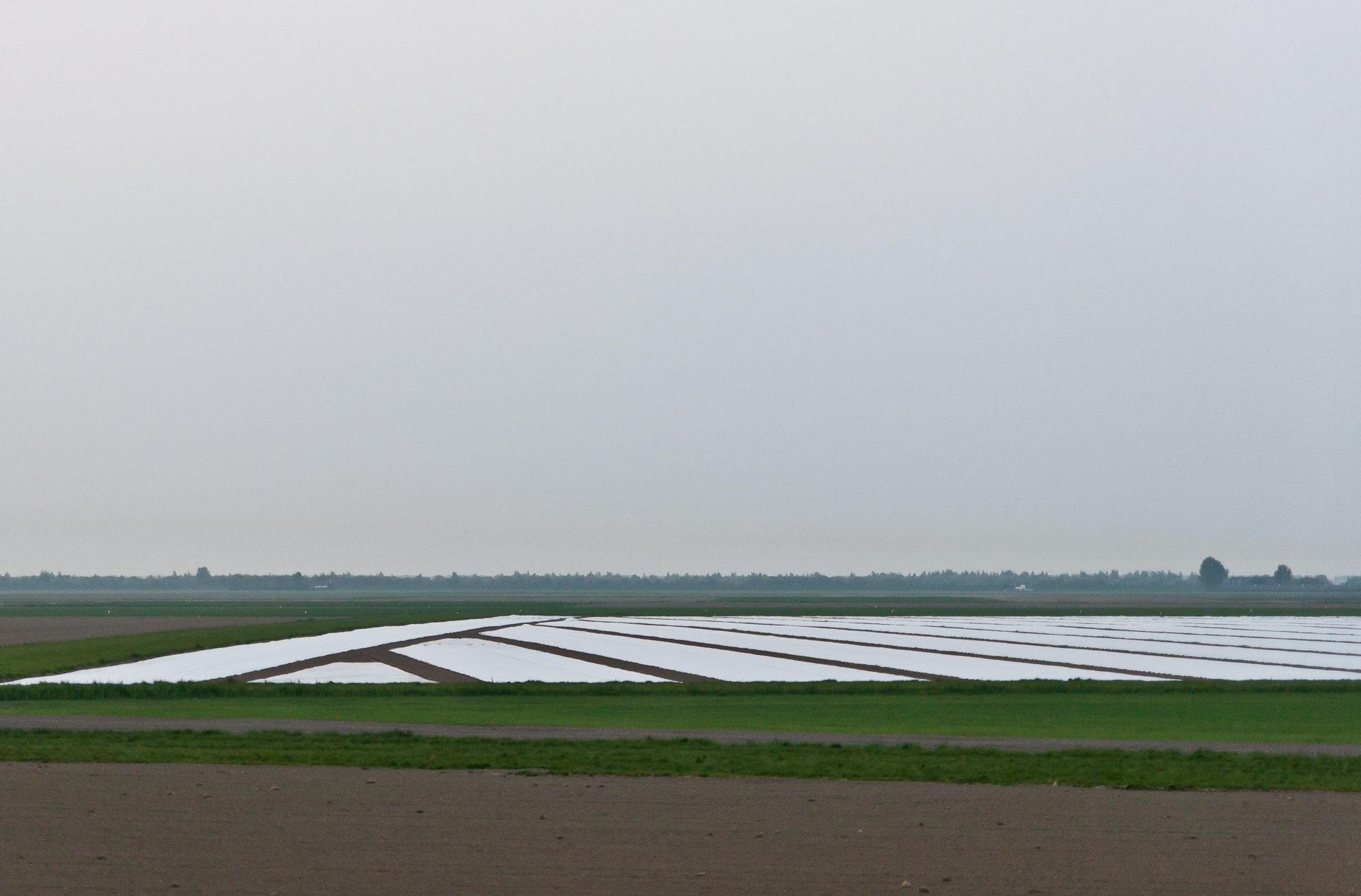 Vlak minimalistisch polderlandschap in tinten en lijnen