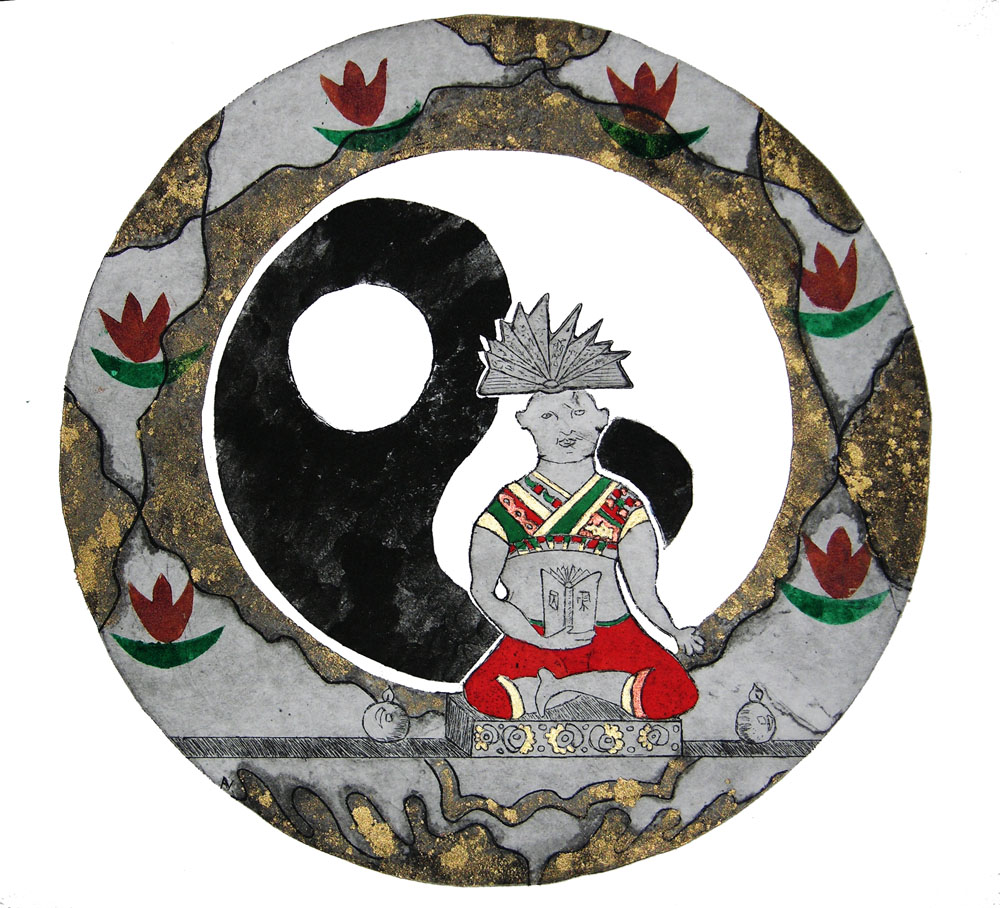 Eenvoud,symboliek en grafische elementen. Etsen, Pastel en Acryl met frisse en kleurrijke voorstellingen.