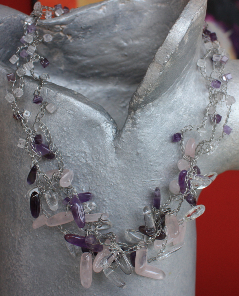 Gehaakte ketting amethist/bergkristal/rozenkwarts
