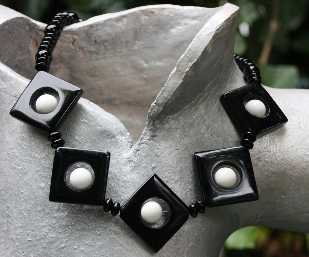Ketting Wit Koraal Zwart Onyx