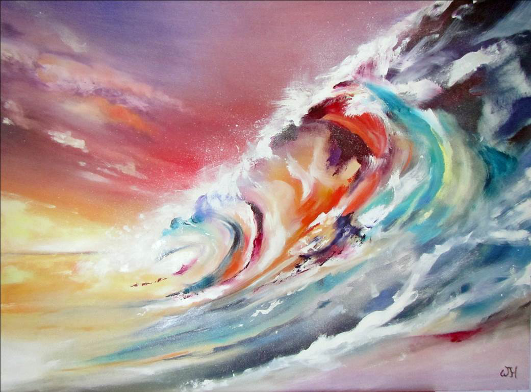 olieverf en aquarel, impressionisme, realistisch. Luchten, water, ruimte, licht en wolken