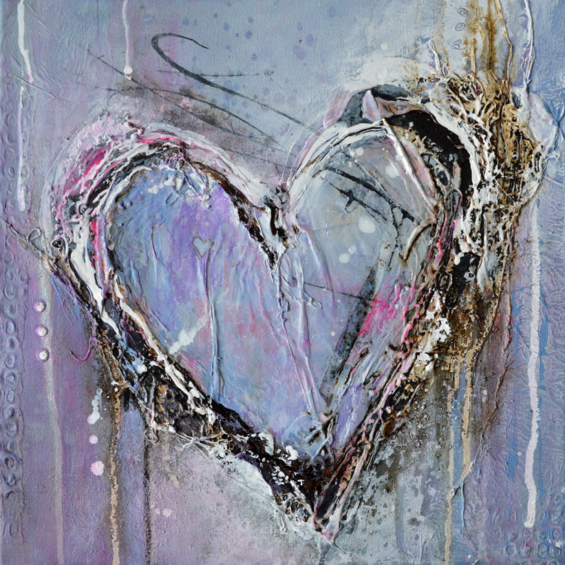Blauw Acryl Paars Hart Mixed Media Materialen
