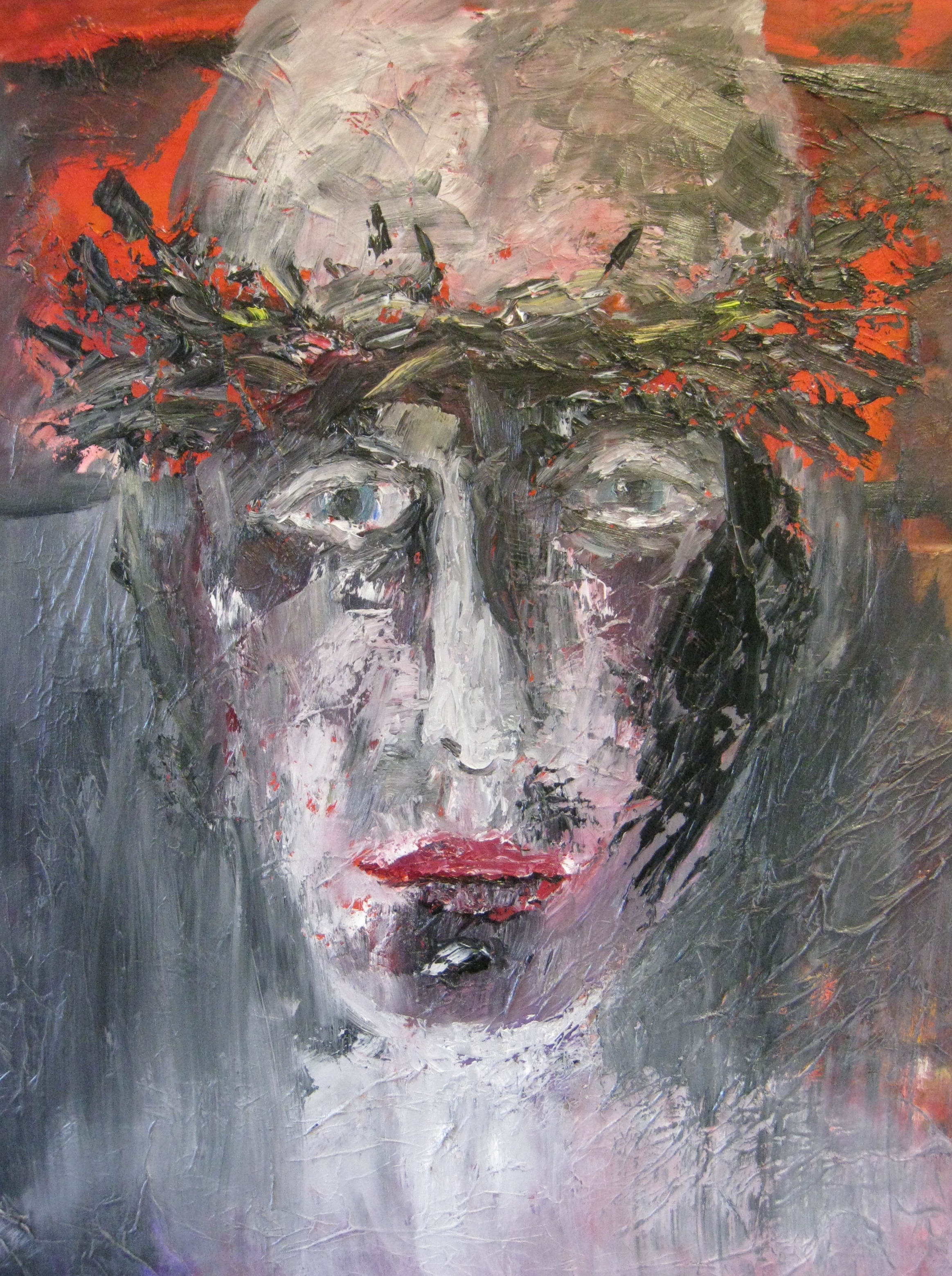 christus portret zwart en rood, in kader van de vastentijd